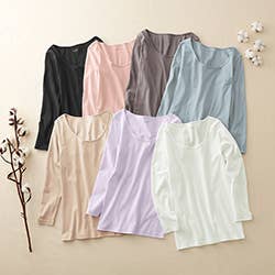 | Features | A classic series with a gentle texture that is pleasing to the skin | 100% cotton innerwear with fewer seams and gentle on the skin | Smooth, tightly twisted cotton perfect for hot weather | Winter cotton innerwear series available in three materials | A warm inner layer with a cut-and-sew feel that can be worn on its own | A classic series of 100% cotton socks that can be used 365 days a year. | A classic series of 100% cotton pajamas that can be used 365 days a year. | A classic series of 100% cotton goods that can be used 365 days a year | With a comfortable fit, it can also be worn as relaxing wear. | 100% wool innerwear that can be worn directly against the skin | The melting texture is addictive | The ultimate innerwear for a special someone |