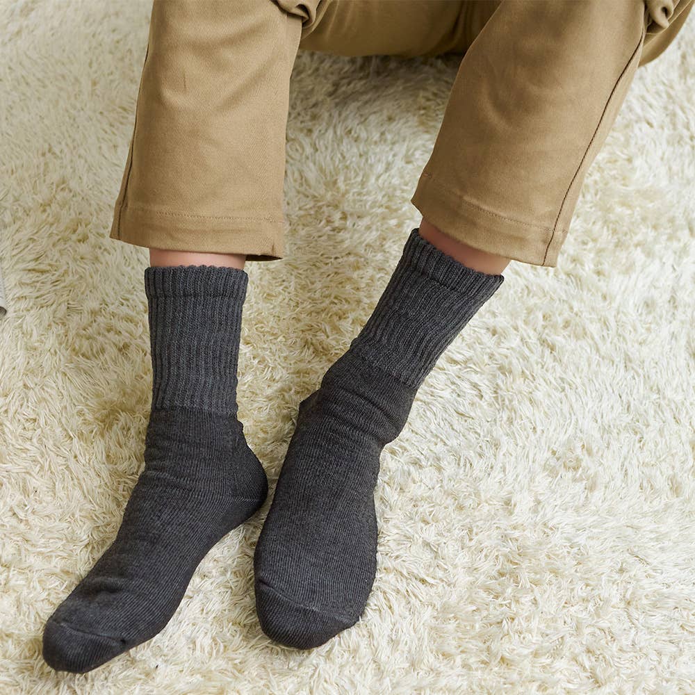 These three-layered socks block out the outside air and keep you warm inside, making them a reliable way to combat the cold. The sweat-absorbing mega pile fabric provides a soft, fluffy, and voluminous feel, reducing sweat and stuffiness. These socks will make your relaxation time even more comfortable.