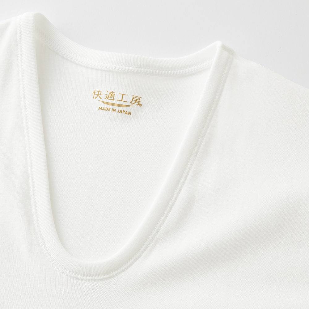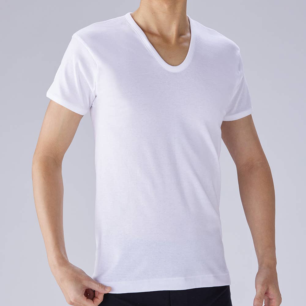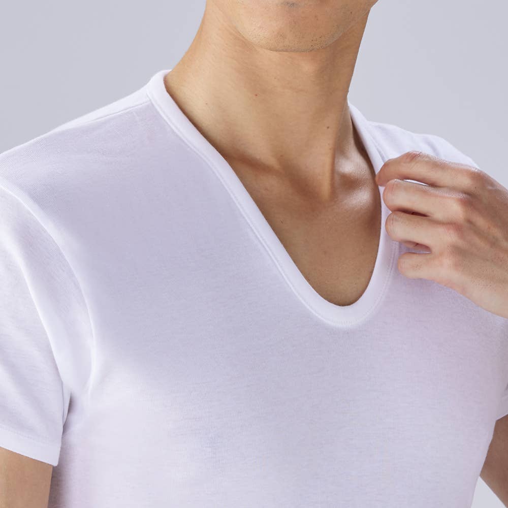 This is a set of four (two sets of two) basic 100% cotton short-sleeved U-neck innerwear in the same color that is soft to the touch.