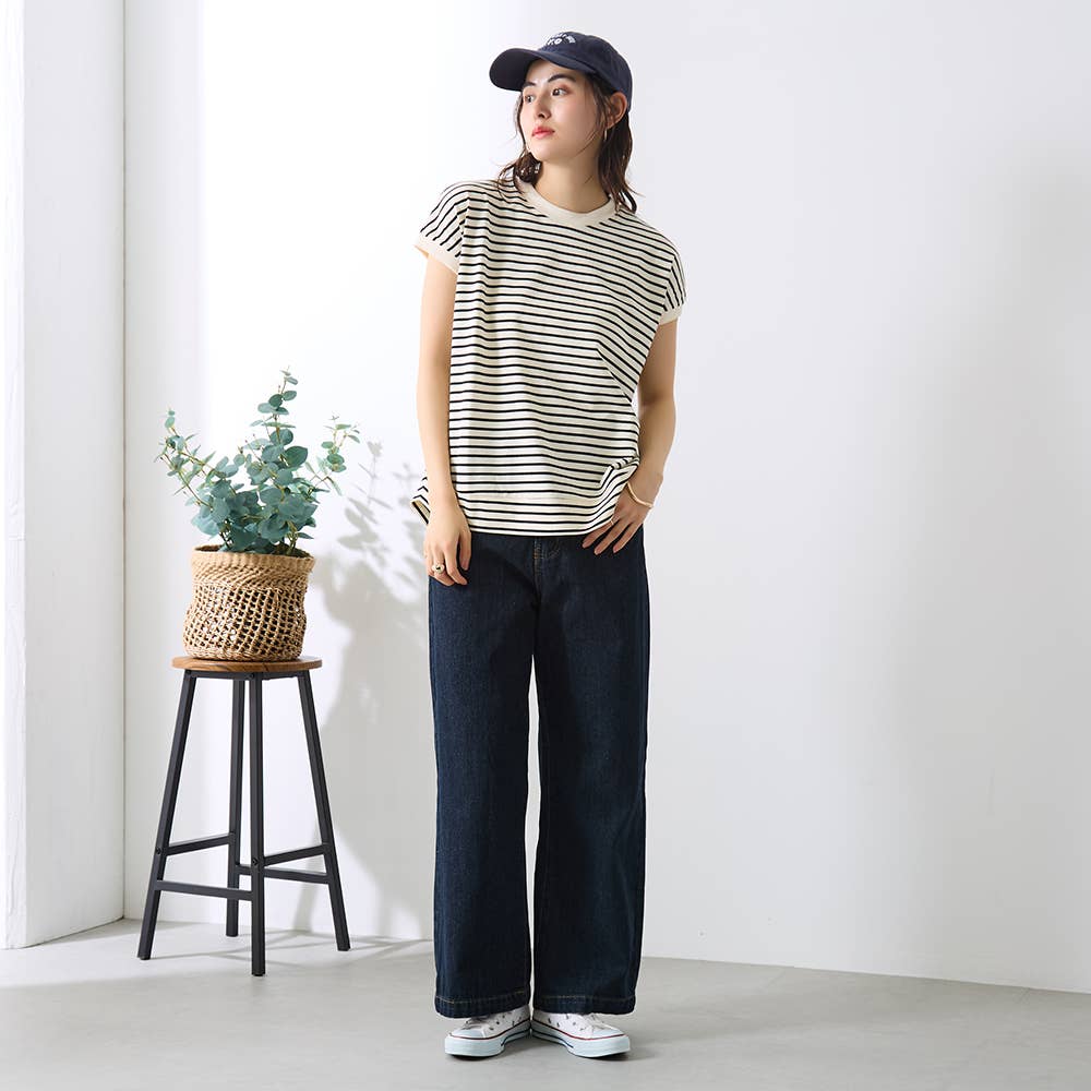 • [Cotton Blend] Striped Sleeveless Top GDZ606 Navy