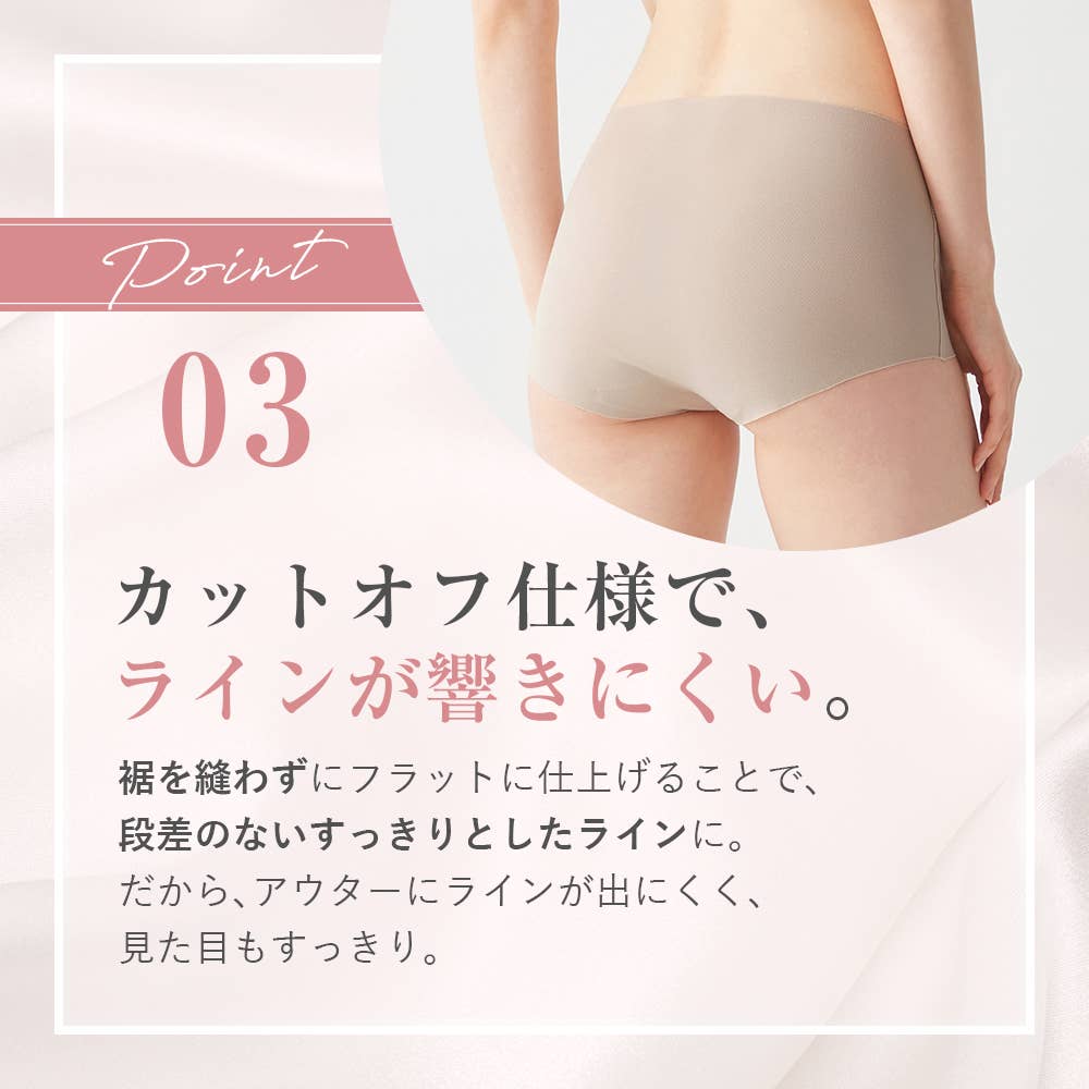 - Cut-off design that prevents the lines of shorts from showing
