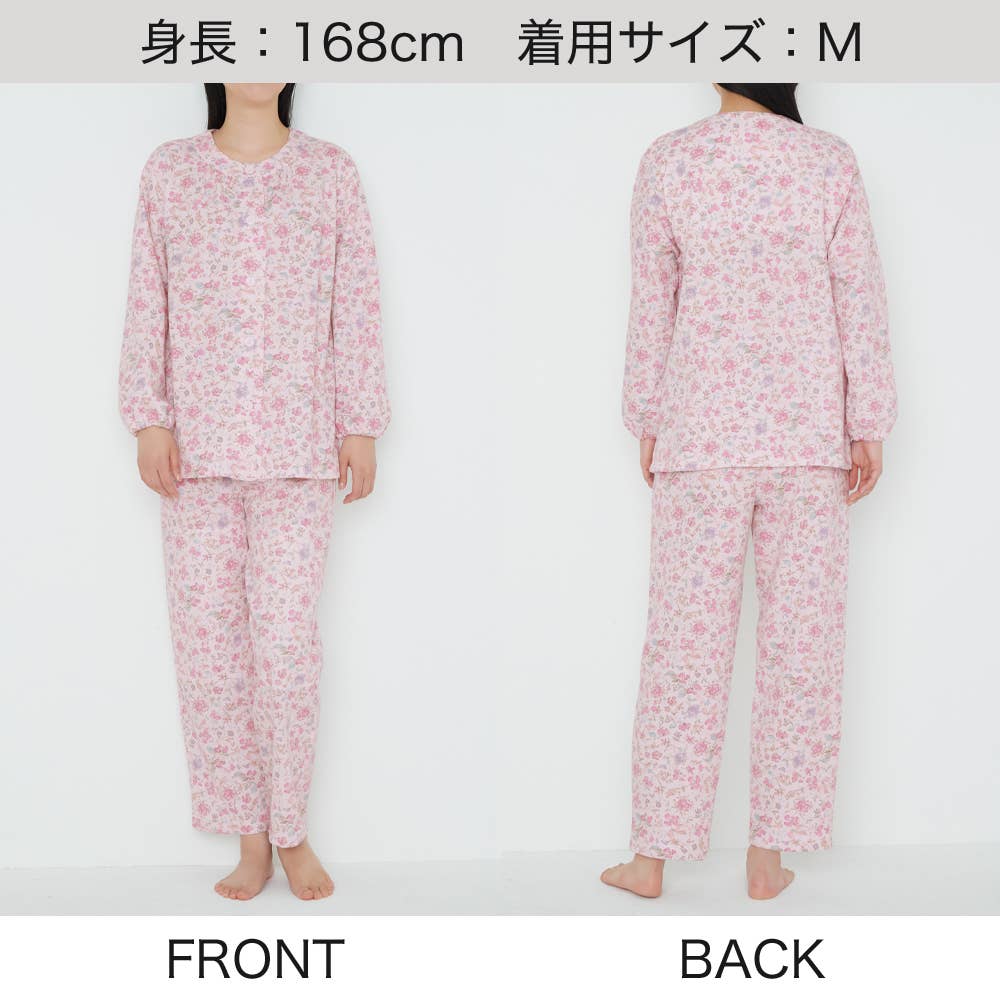 • 【肩ももW保温】ソフトキルト 長袖長パンツ フェミニンパジャマ TG4155EC ピンク