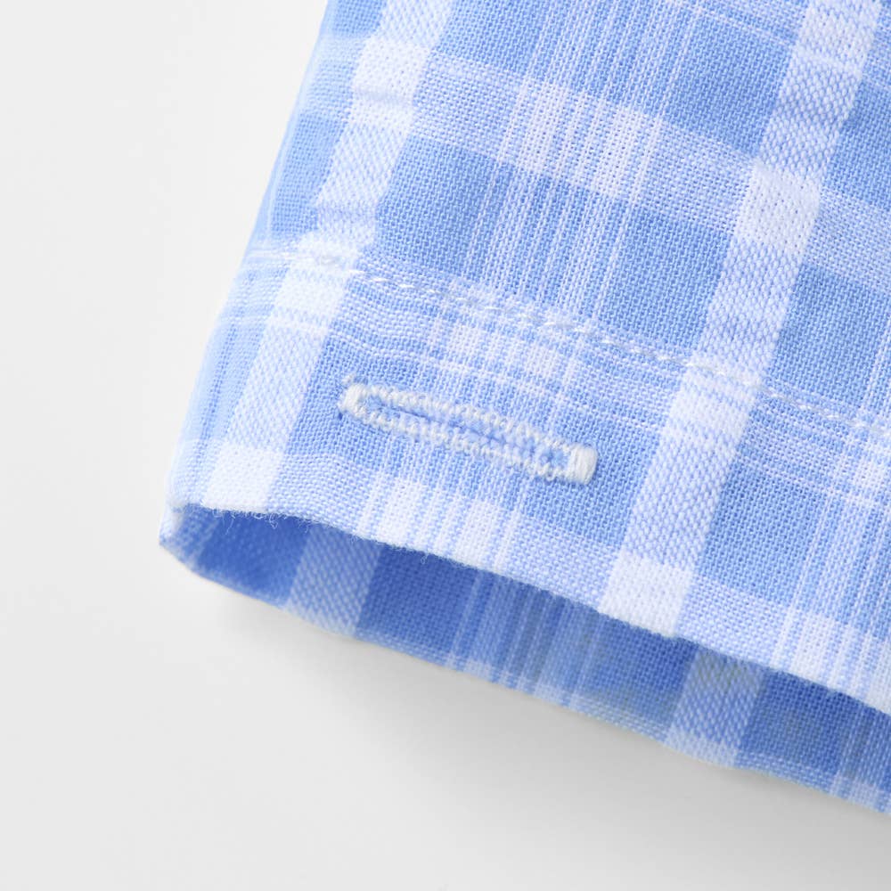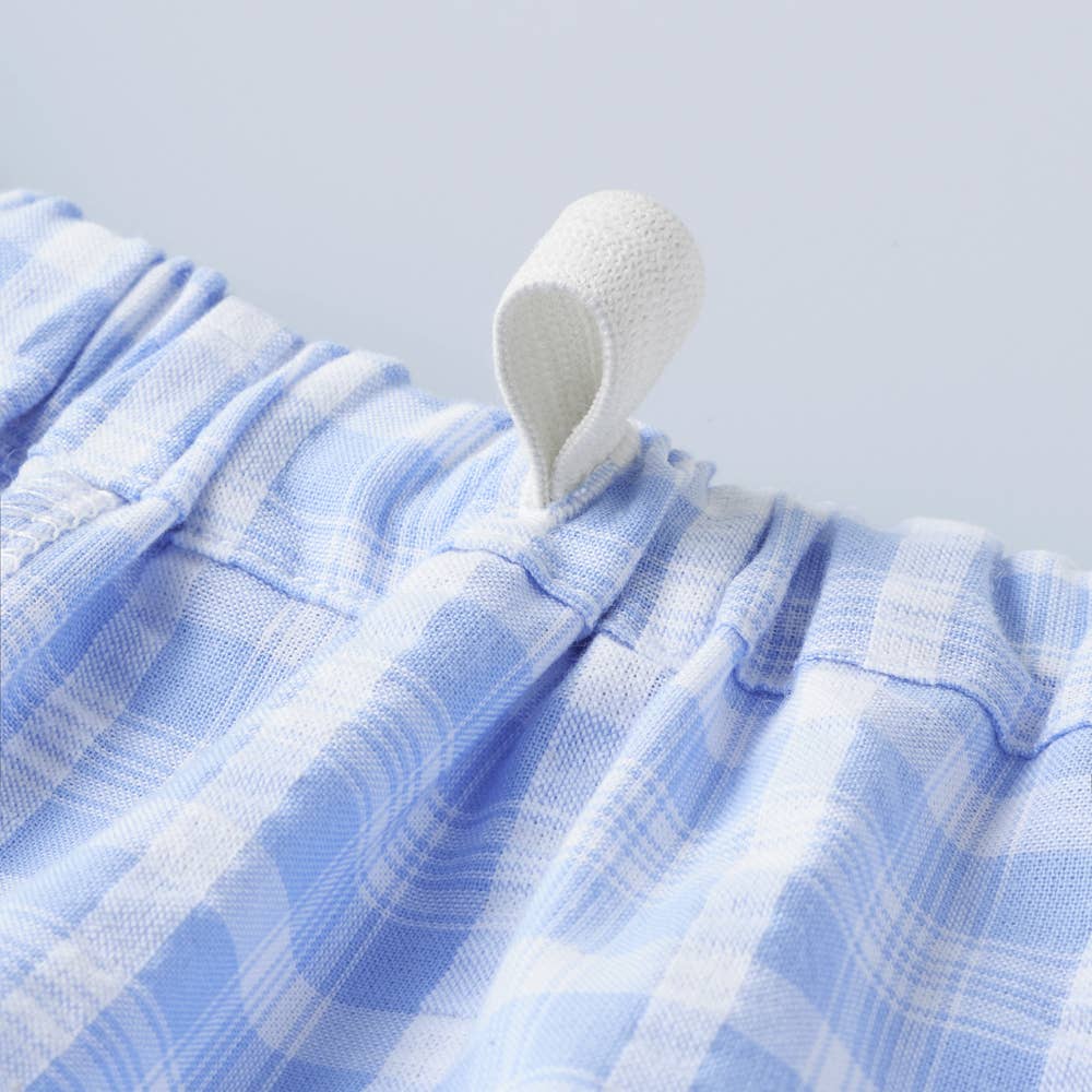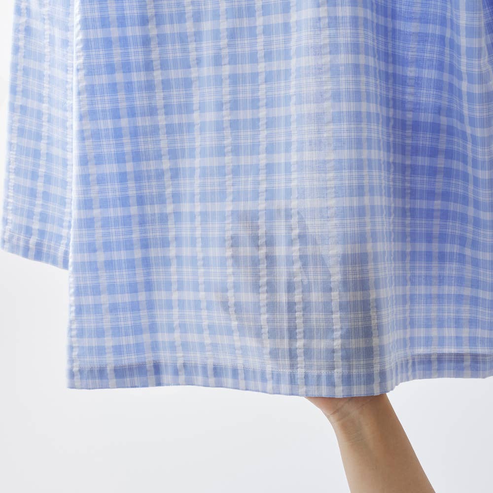 The material is 100% cotton seersucker fabric, and because the fabric has a textured surface, it has less contact with the skin, making it a comfortable and breathable material, ideal for sweaty seasons.
