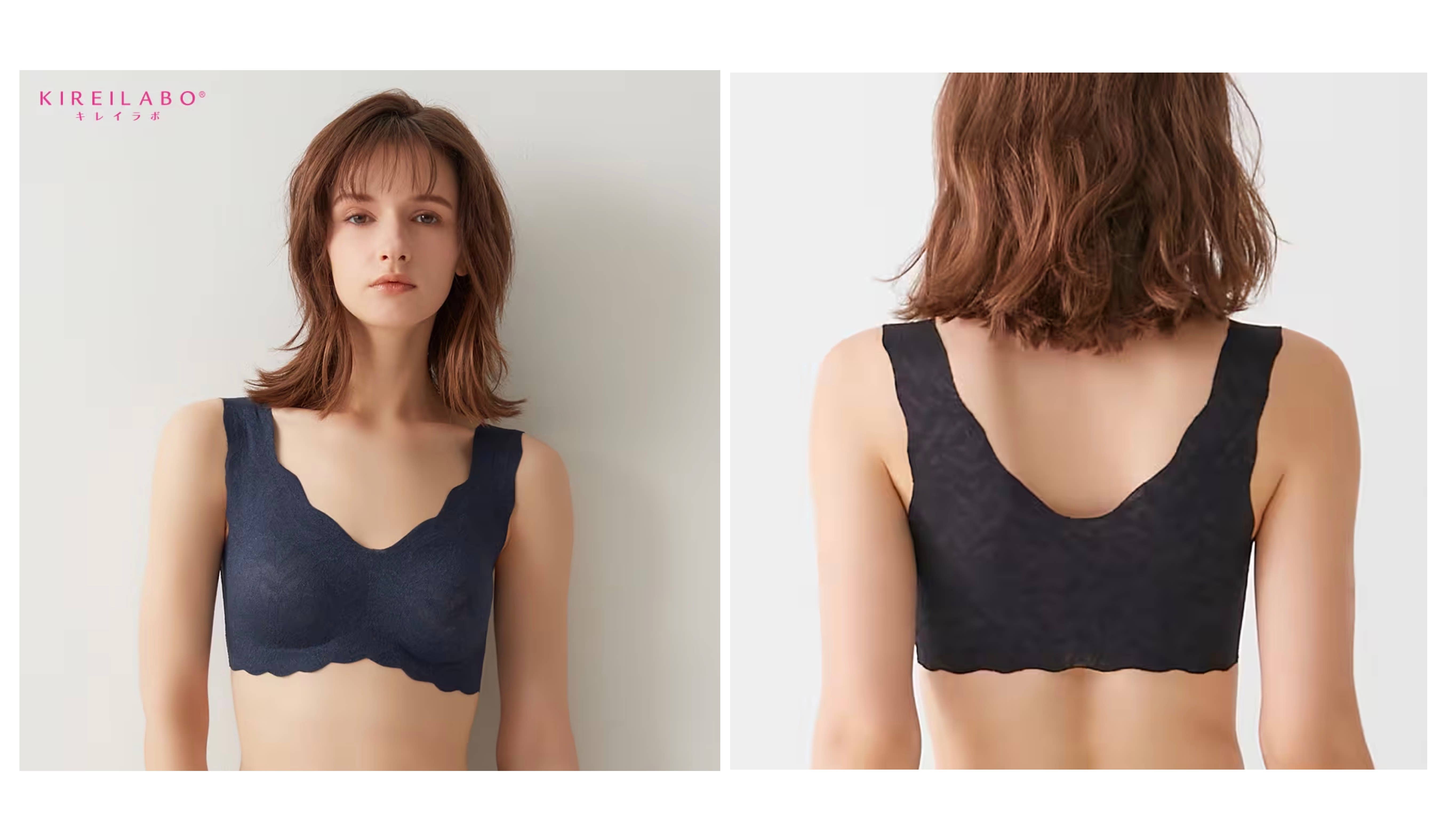 筒井:私が特におすすめするのは、このノンワイヤーブラジャー。切りっぱなしの部分が長いので、アンダーゴムがないにも関わらず、体にしっかりフィットします。