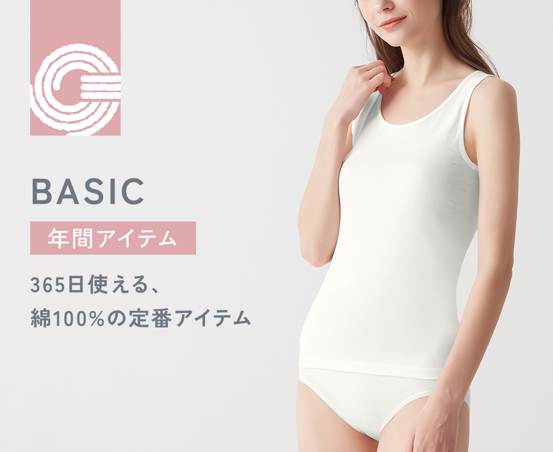 | 特徴 | お肌がよろこぶ、やさしい肌ざわりの定番シリーズ | 縫い目が少なく、お肌にやさしい綿100%のインナー | 暑い季節にぴったりなさらっとした強撚綿 | 3素材から選べる冬の綿インナーシリーズ | 「1枚で着られる」ことにこだわったカットソー感覚のあったかインナー | 365日使える、綿100%の定番シリーズのソックス | 365日使える、綿100%の定番シリーズのパジャマ | 365日使える、綿100%の定番シリーズの雑貨 | ほどよいフィット感で、リラックスウェアとしても | 素肌に直接着られる、ウール100%インナー | とろけるような肌ざわりがやみつき | 大切な人に贈るのにふさわしい最高峰インナー |
