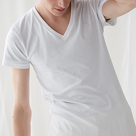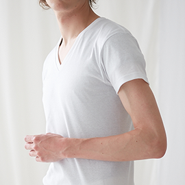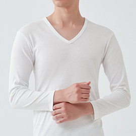 通常の綿より吸湿性が高く、衣類内のムレをコントロール。季節を問わず着られる優れもの。