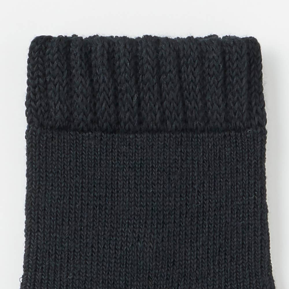 アクリルとレーヨン素材で作られたローゲージの肉厚仕様で、無地デザインのシンプルさが魅力。消臭加工も施されており、足元の気になる匂いを抑えます。履き口がゆったりとしたデザインで、長時間履いても圧迫感がなく快適です。