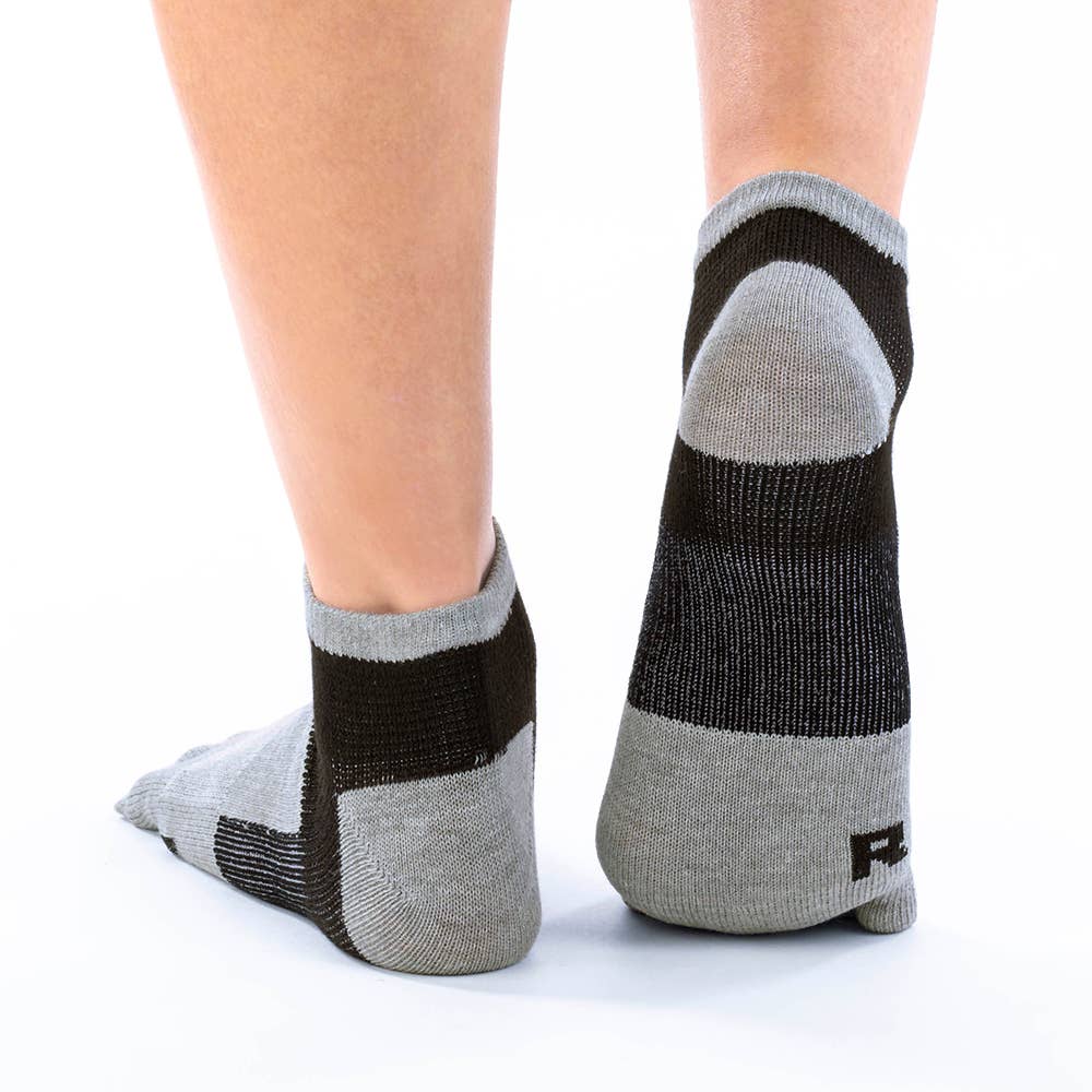土踏まずを持ち上げ荷重を分散させるアーチサポート設計で快適な履き心地。動いた時のズレ・ずり込みも防止します。履き心地を考えた左右設計で、R(右)L(左)のマークが付いています。運動時に嬉しい吸汗速乾機能や、消臭加工も施しています。