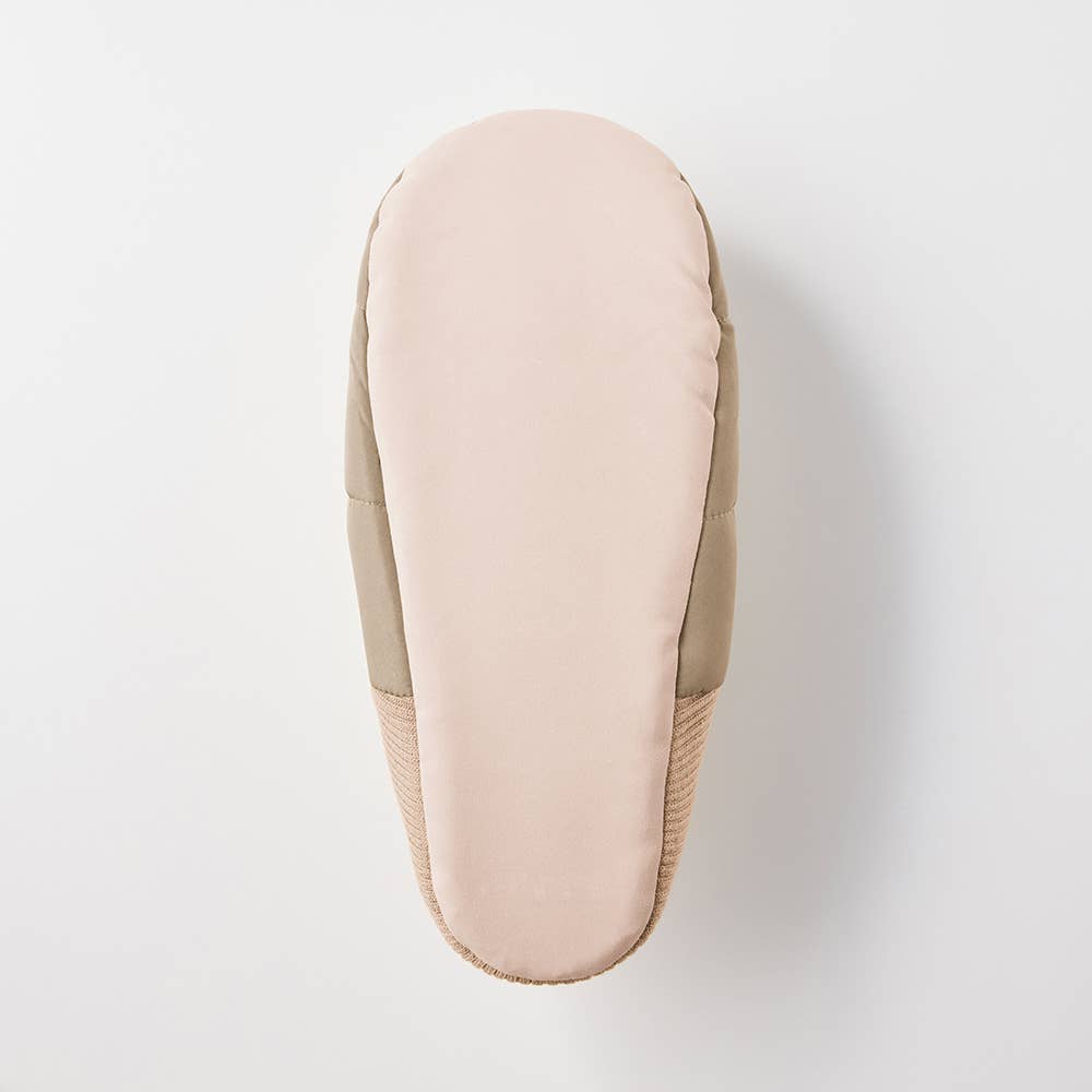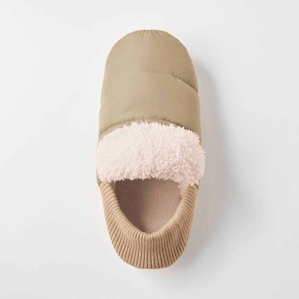 - 表地・裏地:ポリエステル100%、かかと:ポリエステル97%・ポリウレタン3%、中わた:ポリエステル90%・合成繊維(アクリレート系)10%、足底:ポリエステル100%(ポリウレタンコーティング)