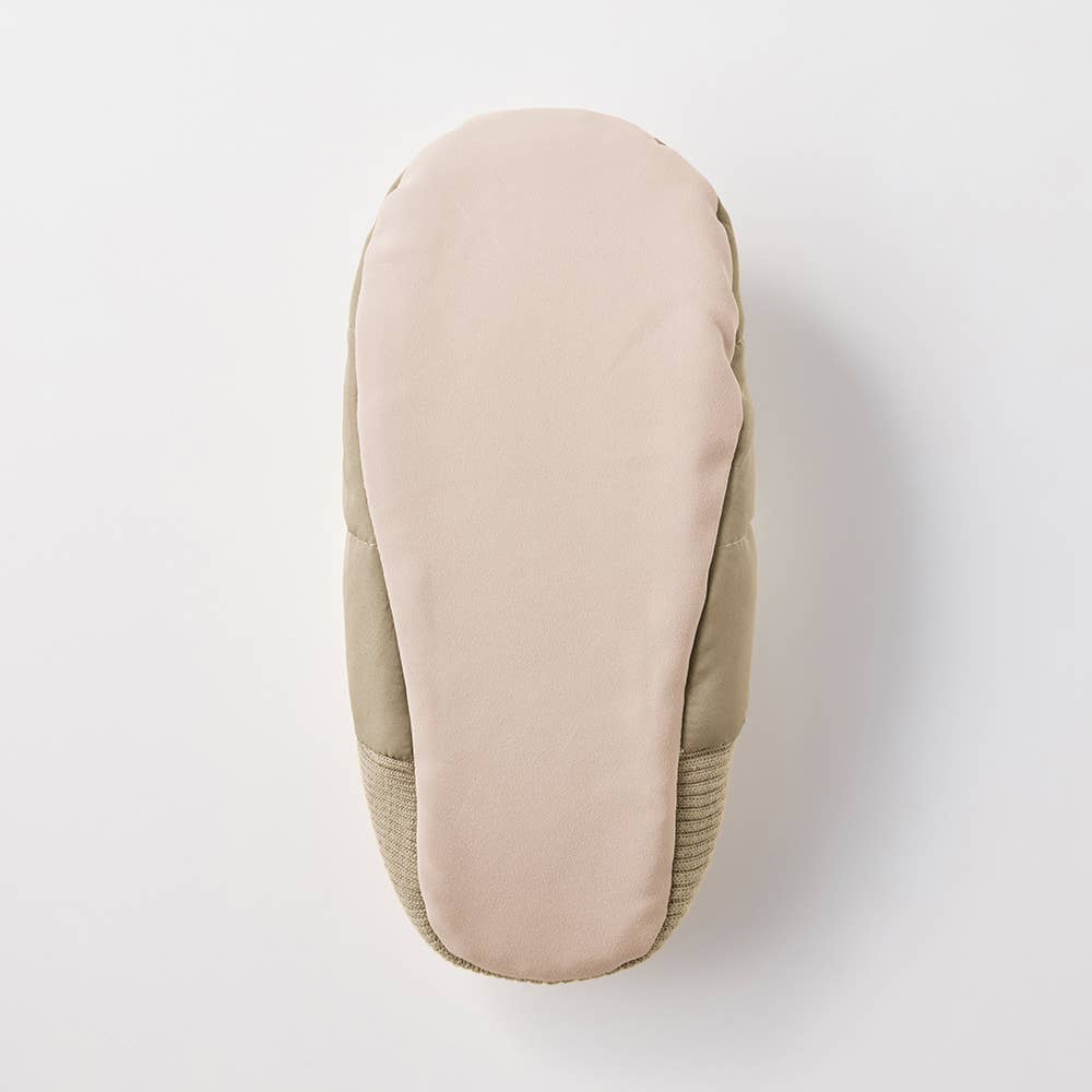 - 表地・裏地:ポリエステル100%、かかと:ポリエステル97%・ポリウレタン3%、中わた:ポリエステル90%・合成繊維(アクリレート系)10%、足底:ポリエステル100%(ポリウレタンコーティング)