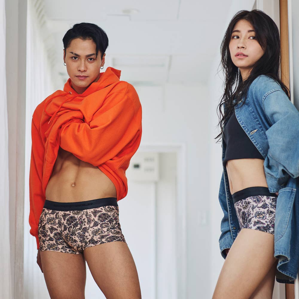 REOさん自身が「穿きたい!」にこだわった、オシャレなペイズリー柄とレオパード柄のデザイン。男女ペアで楽しめる、とっても可愛いボクサーパンツに仕上がりました!