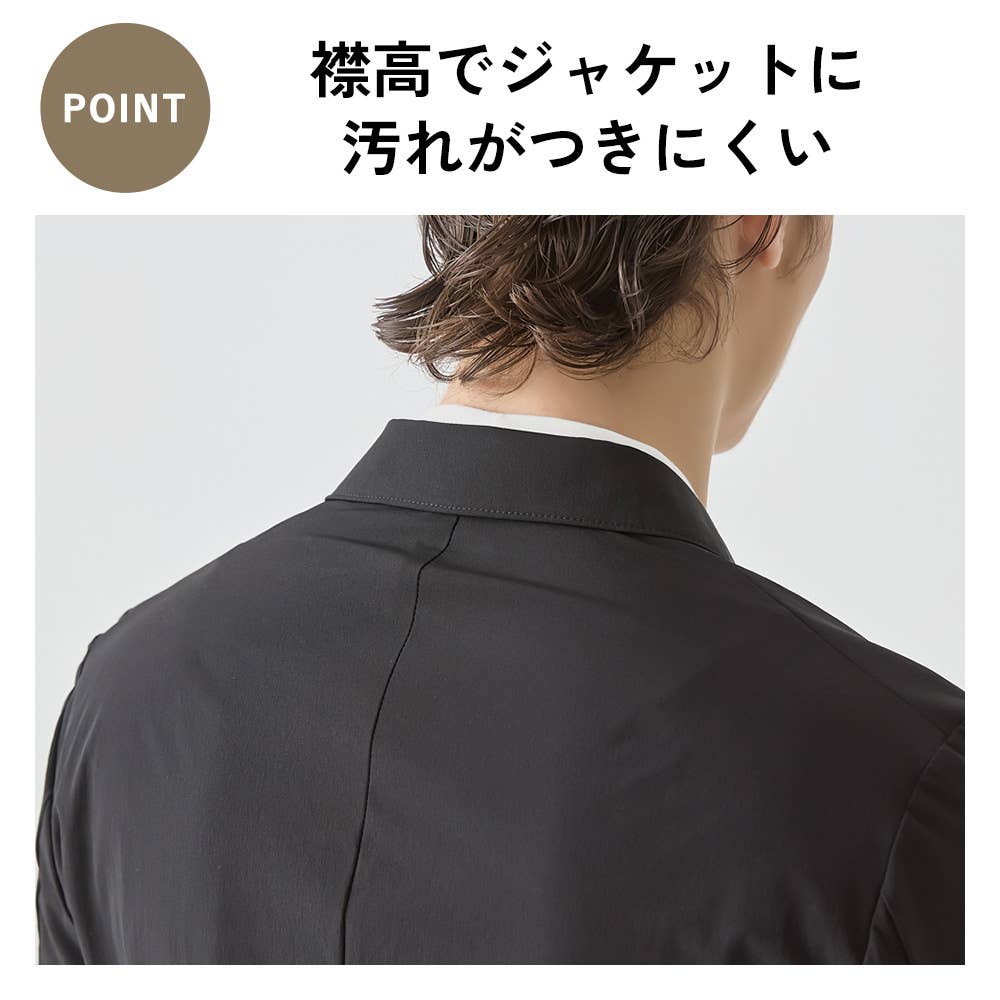 後ろ襟を高く設計することで、ジャケットの襟裏の汚れを軽減します。