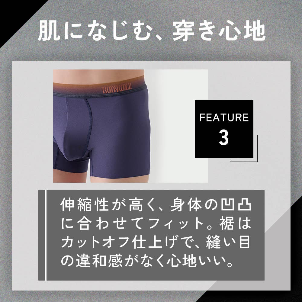 1枚の重さは通常のボクサーパンツの約半分(当社比)。超軽量で素肌感覚の着用感。