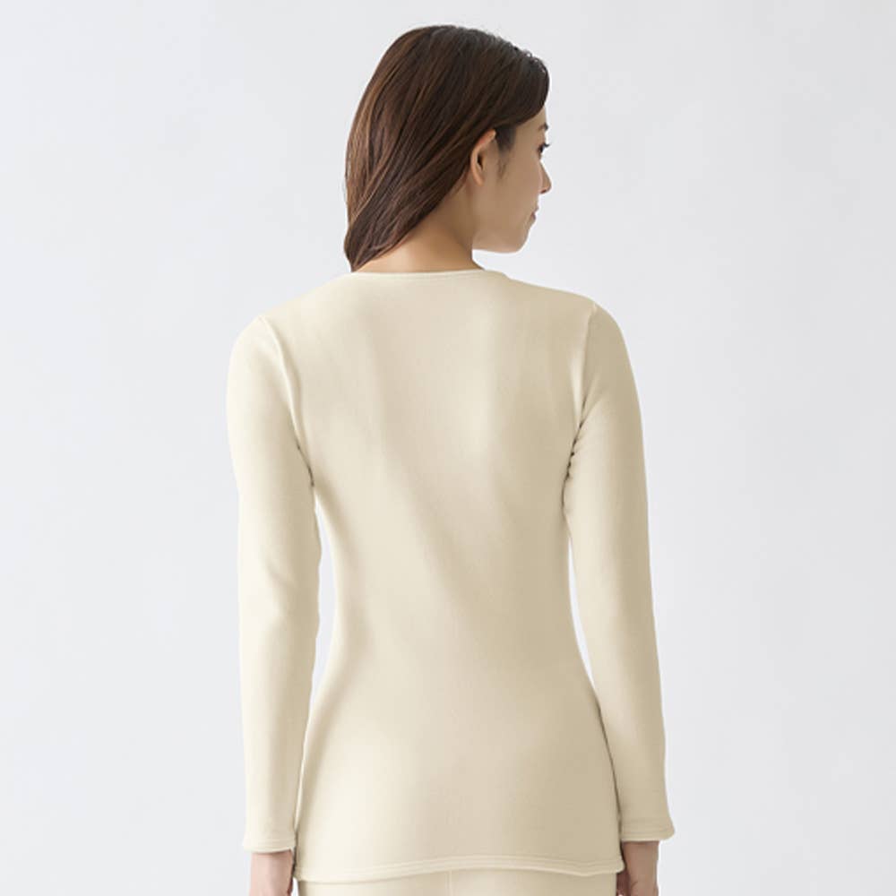 裏起毛で厚手なので、しっかり暖かいのがポイント。綿肌着5枚分の暖かさ(※)を1枚で実現しました。