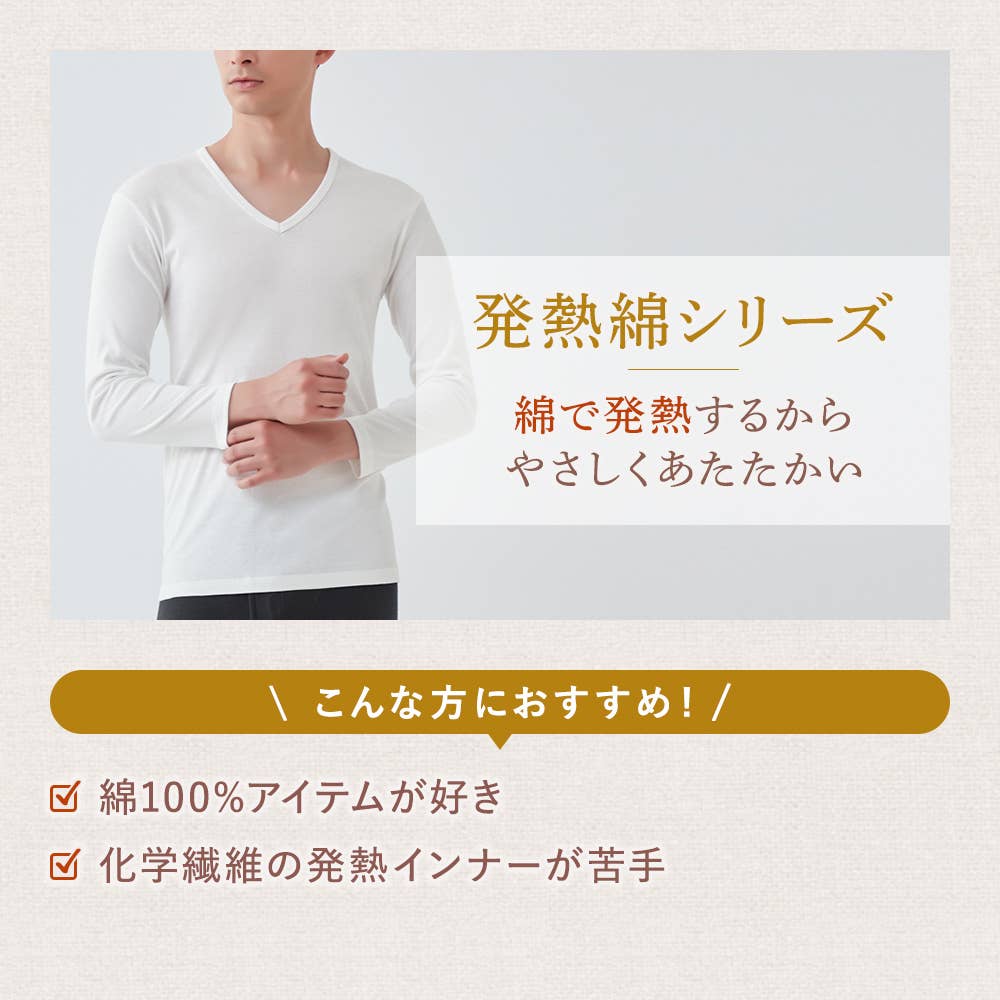\こちらは、天然素材を活かした肌にやさしい発熱綿シリーズです。/