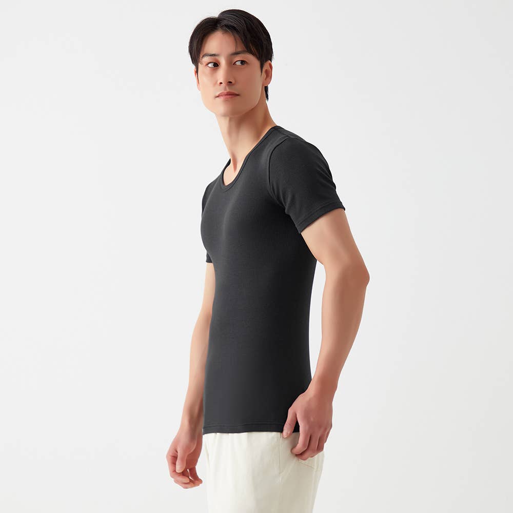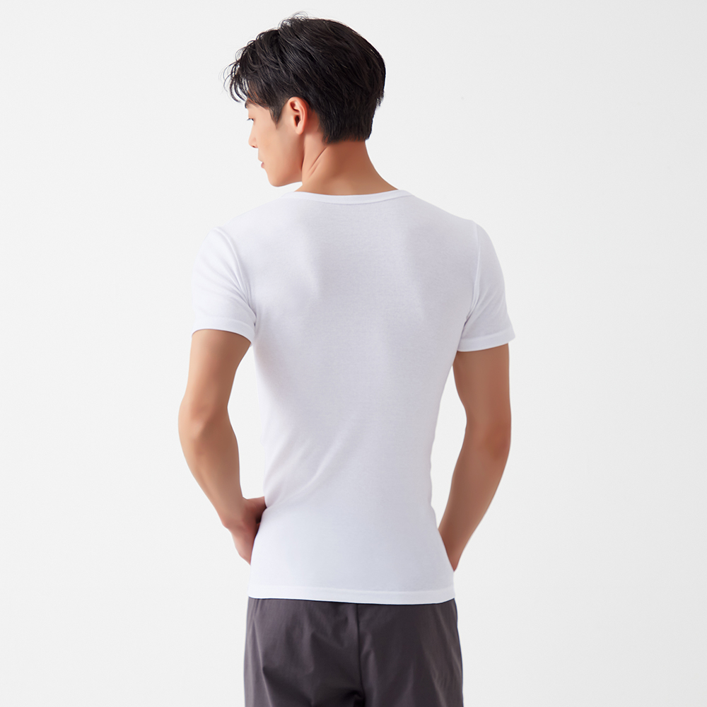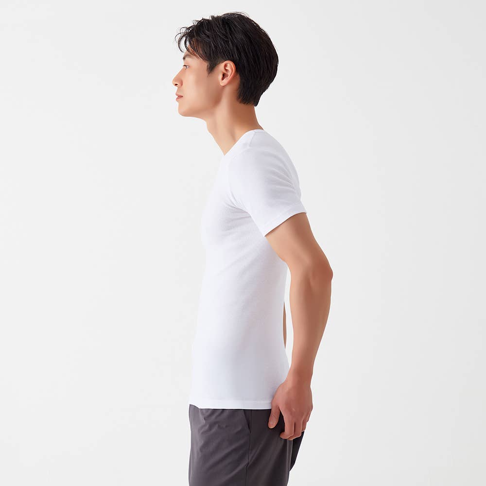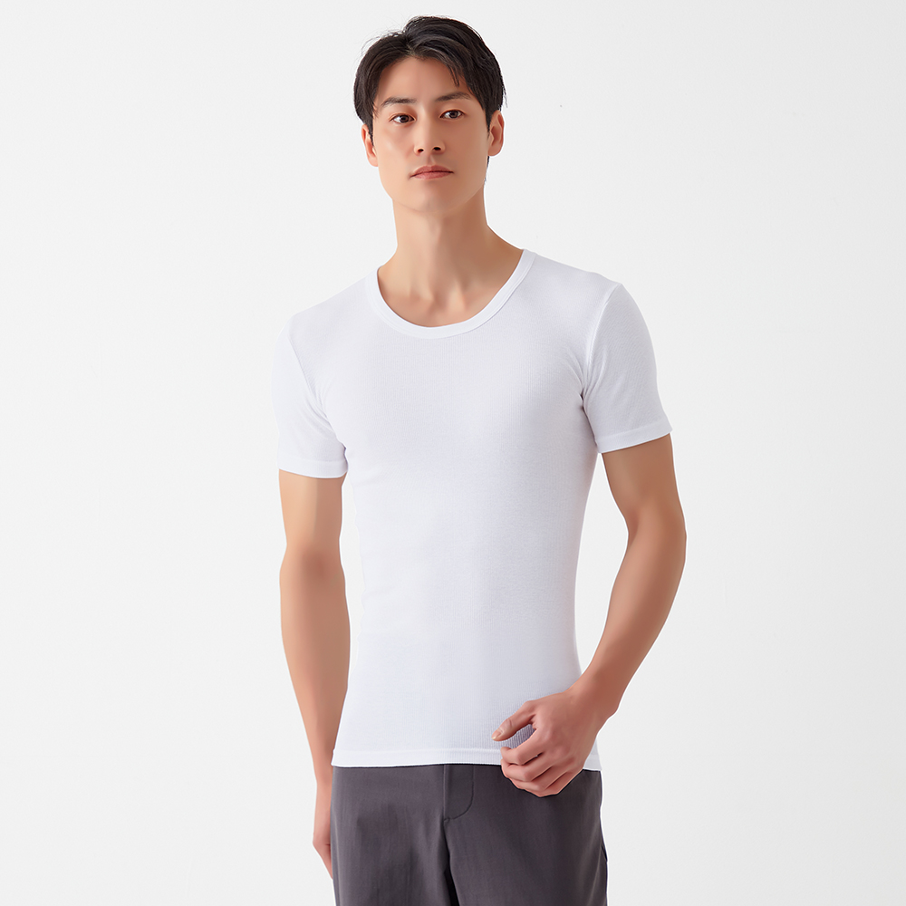 ずっと愛されてきた綿100%、今度はリブのフィット感でさらに心地よく。