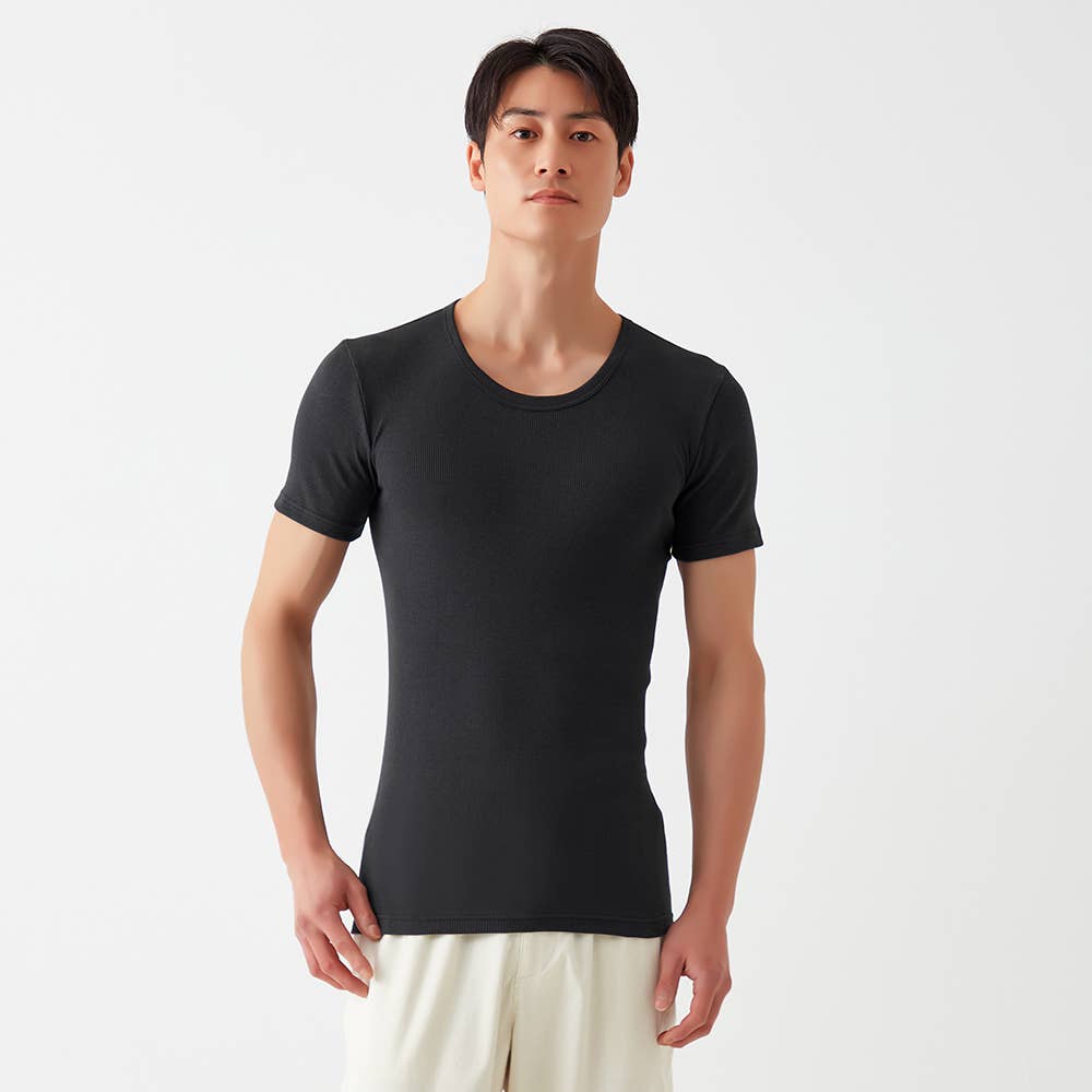 • 【綿100%/リブ】クルーネックTシャツ(丸首) CK7413 ブラック