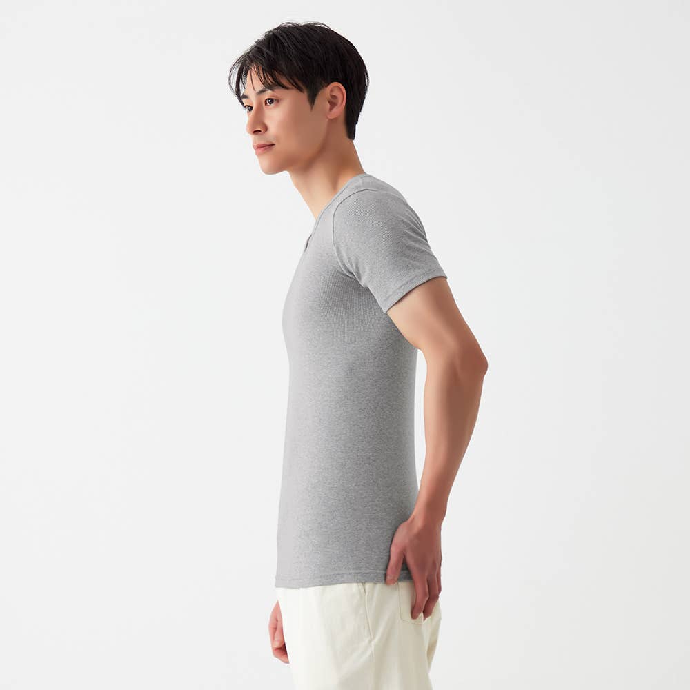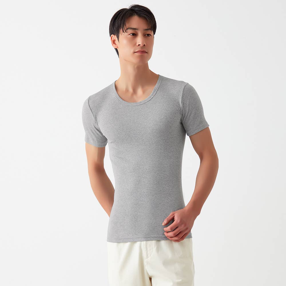 • 【綿100%/リブ】クルーネックTシャツ(丸首) CK7413 グレーモク