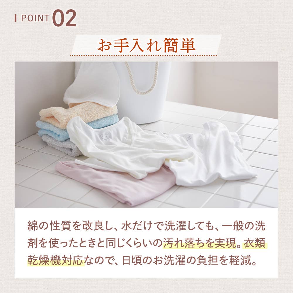 残留洗剤も少ないのでより低刺激な状態で着用いただけます。