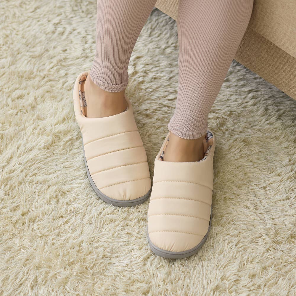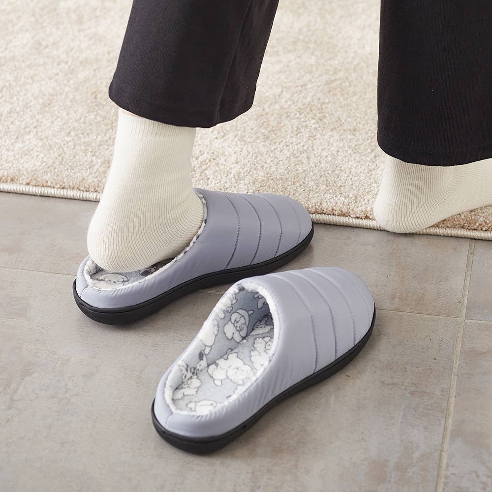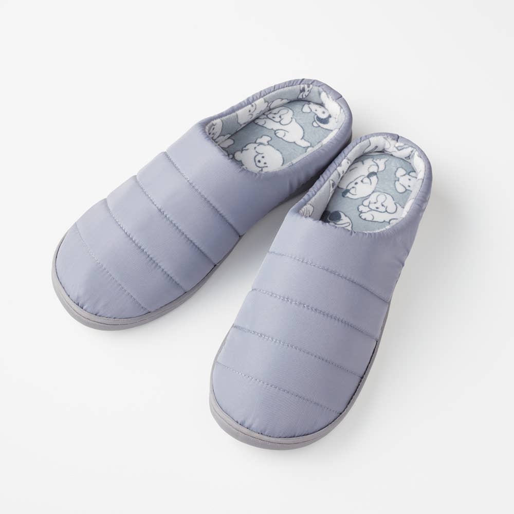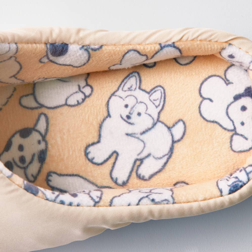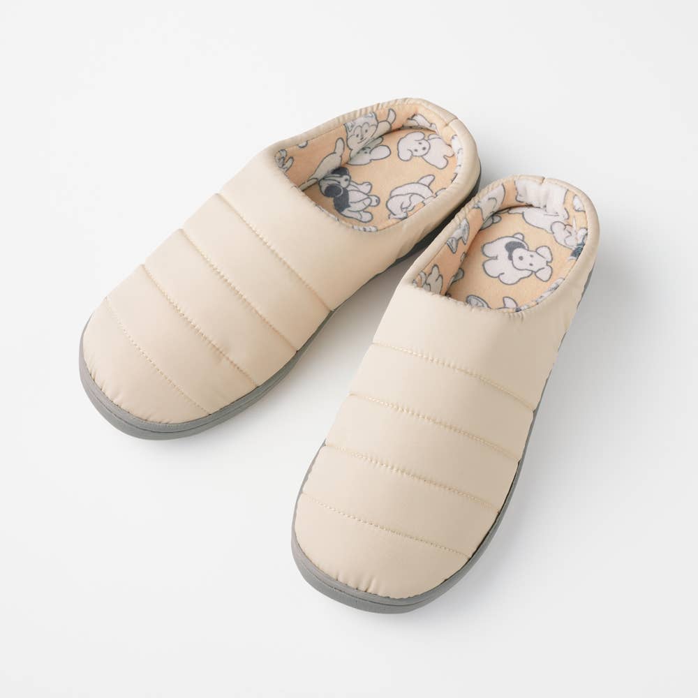 犬を中心に、やさしい雰囲気で動物の絵を描かれるイラストレーターてらおかなつみさんとのコラボアイテムの中綿入りでコロンした形が可愛いルームシューズ2色セットです。