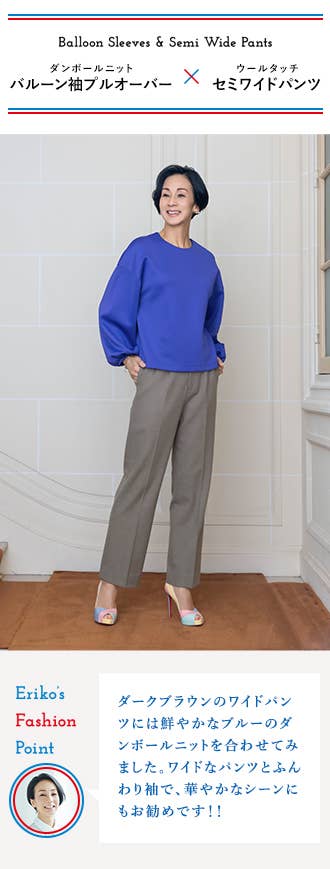 フリーアナウンサーでタレントの中村江里子さんがプロデュースする、キチンと見えて、着回ししやすく、着心地もラクで、簡単に洗えるコラボコレクションです。いろんなファッションを経験し、体型の変化も気になり出した世代に合わせたアイテムです。