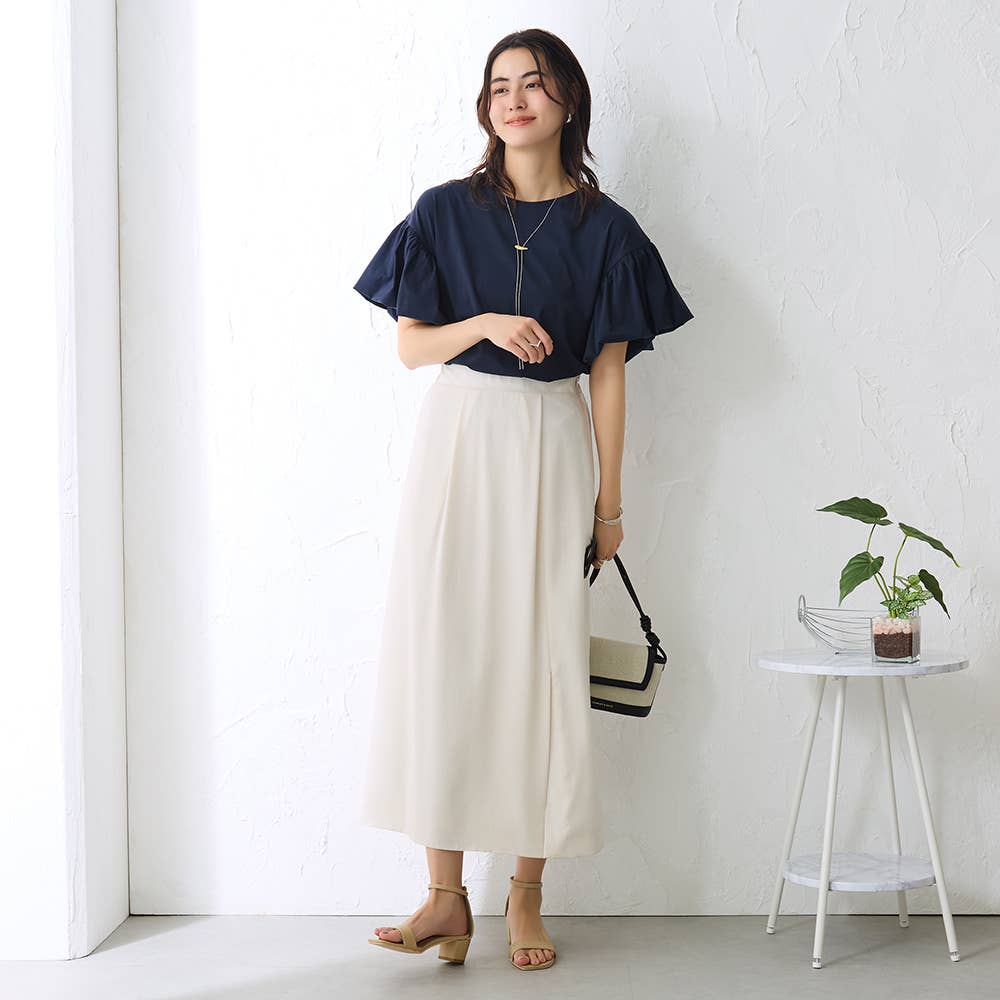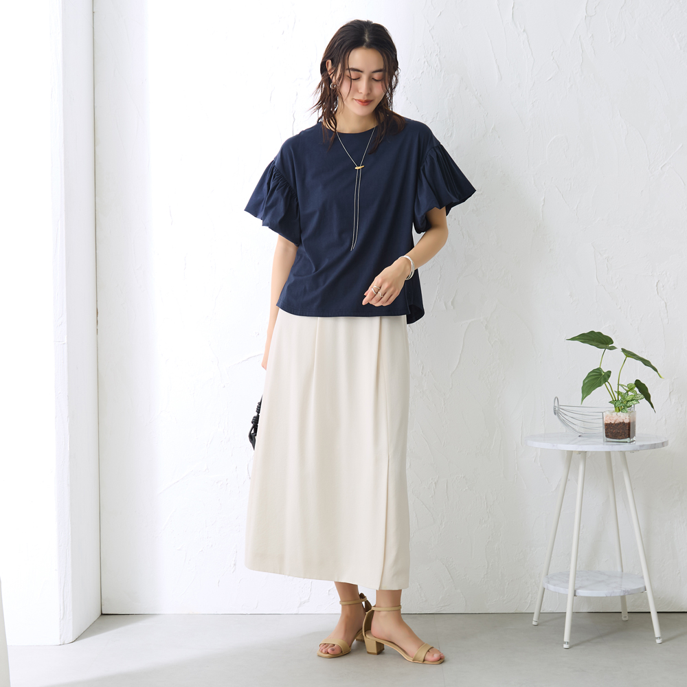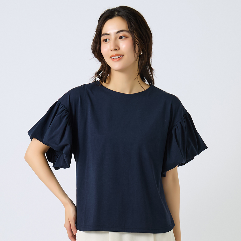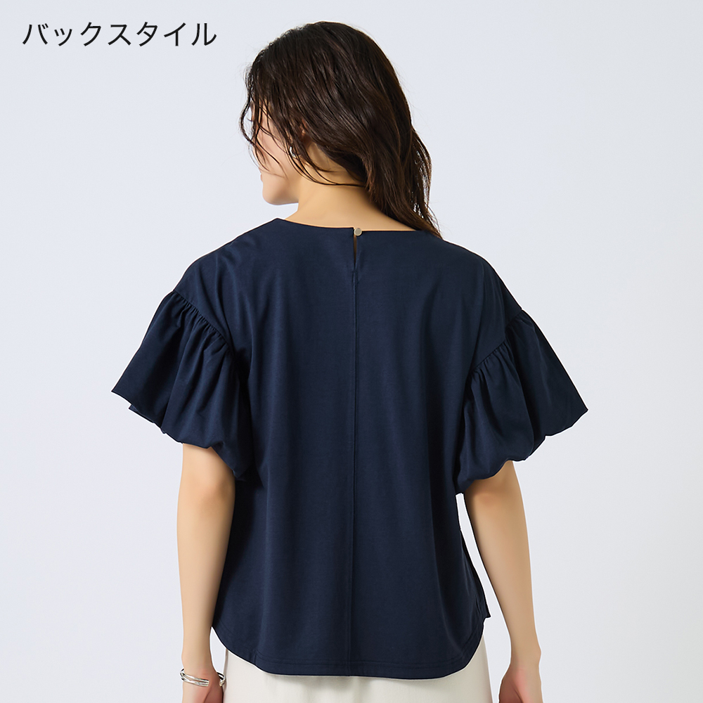 ふんわりとしたタック使いのパフスリーブがフェミニンなアクセントとなったカットソーです。