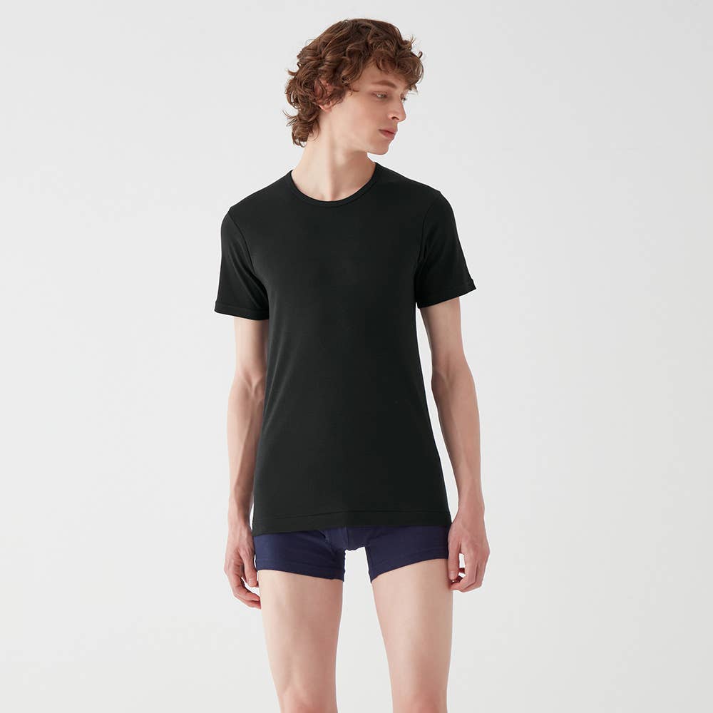 肌への刺激となる脇縫いや洗濯タグをなくし、衣服内でのごわつきや縫い目によるかゆみを軽減しています。これまでシャツのタグや首元のチクチクが気になっていた方にオススメです。