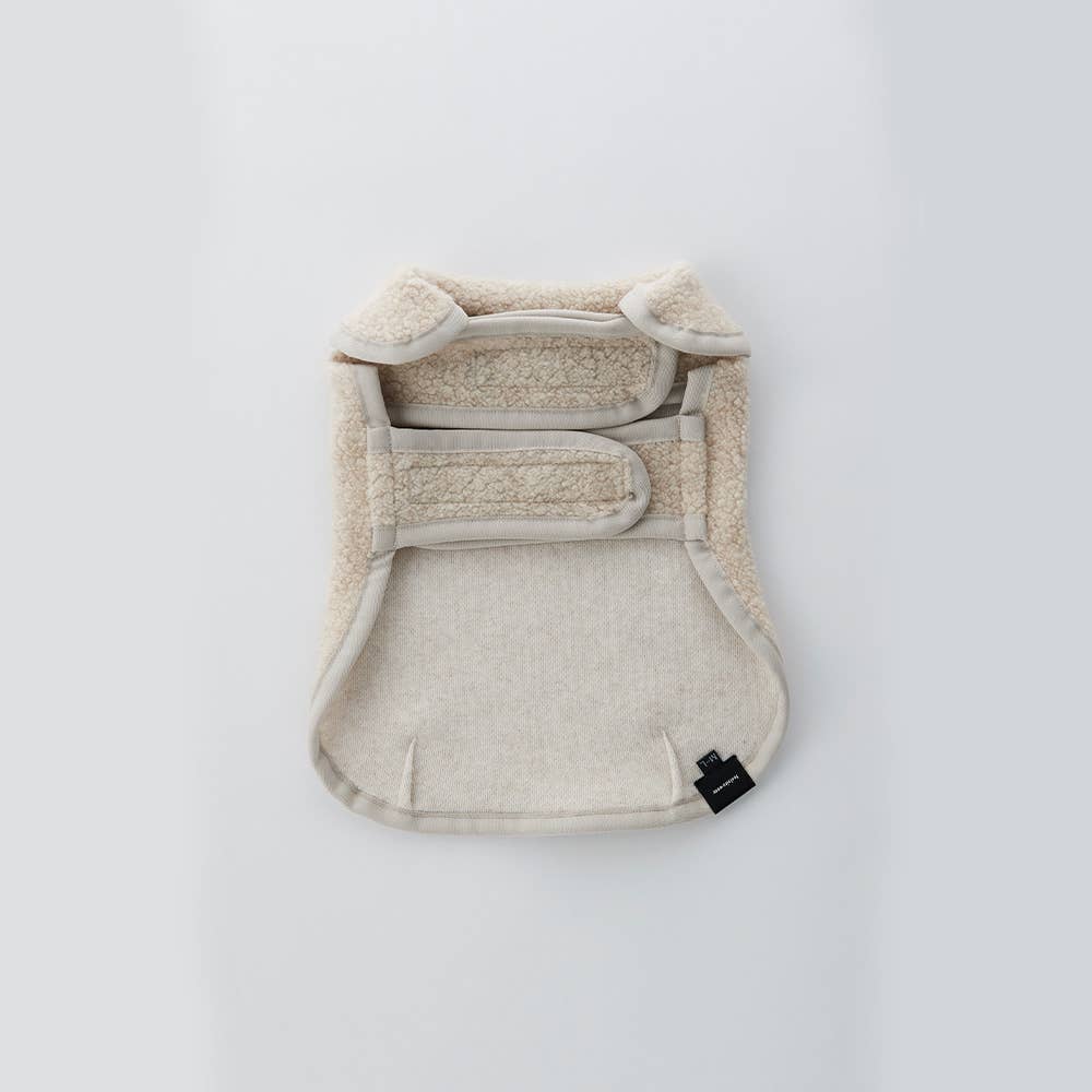 ハーネスの上からアウター感覚で着られるように、背中側にリード穴を付加。