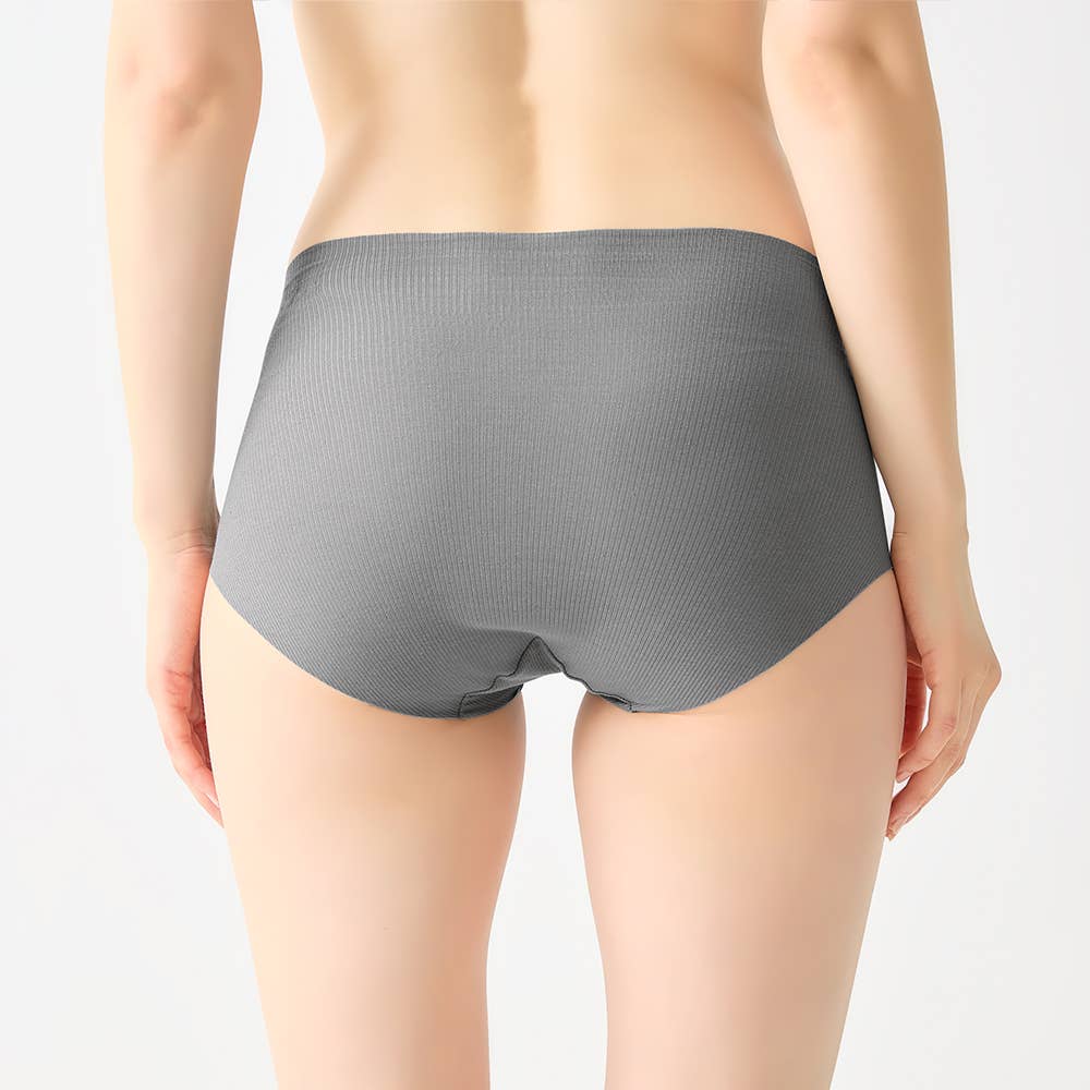 柔らかくやさしい着ごこちのリブ素材で、ウエストや裾をきりっぱなしにしたショーツです。