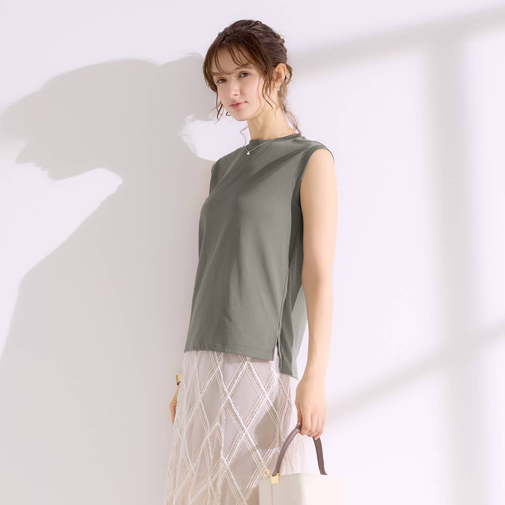カラーは全部で5色。また、サイドにスリットが入っているので、ボトムにインしても、出しても使いやすく、無地なので1枚持っておくと便利です。