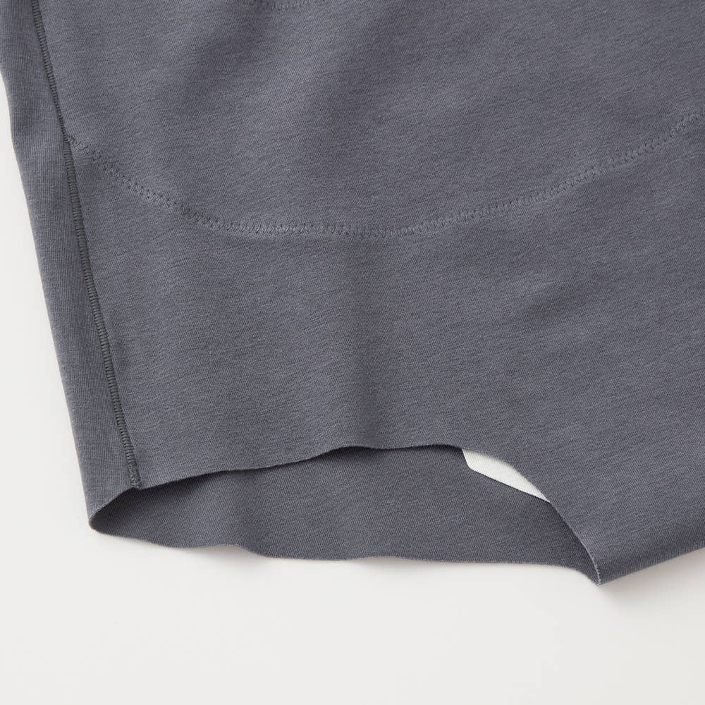 太ももの付け根部分の圧迫を軽減するボーイズレッグの丈。足ぐりはきりっぱなしでゴムが無く、締め付けにくい。