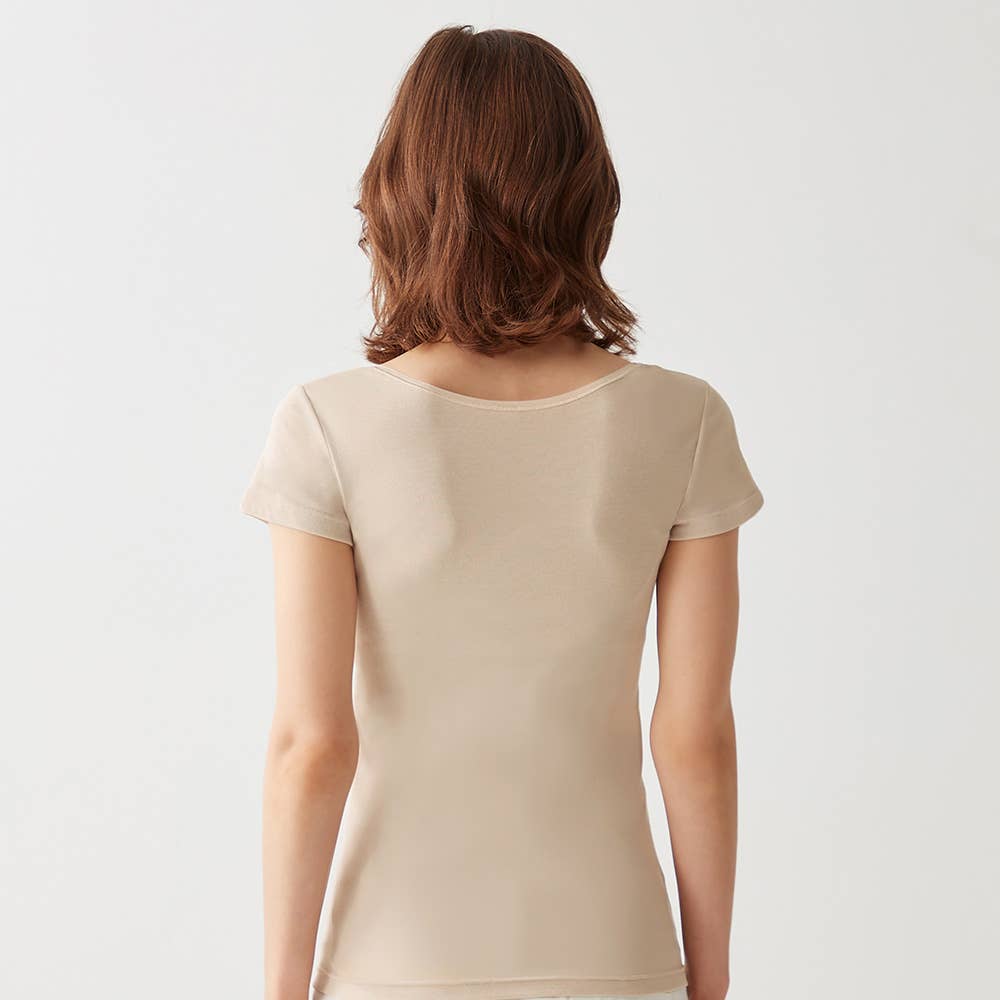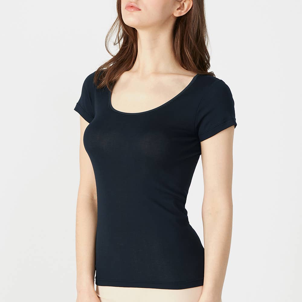 汗取りパッド付きで脇汗対策も同時にできるから、暑い季節にぴったりな2分袖インナーです。