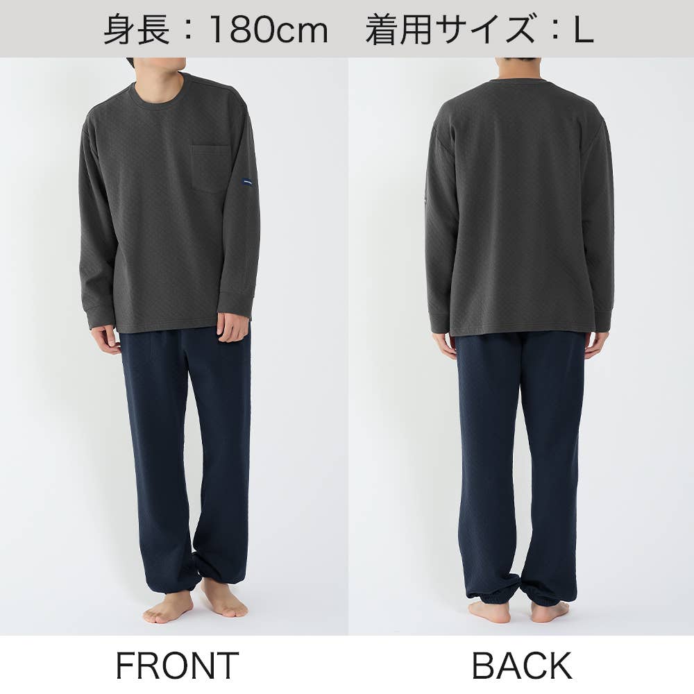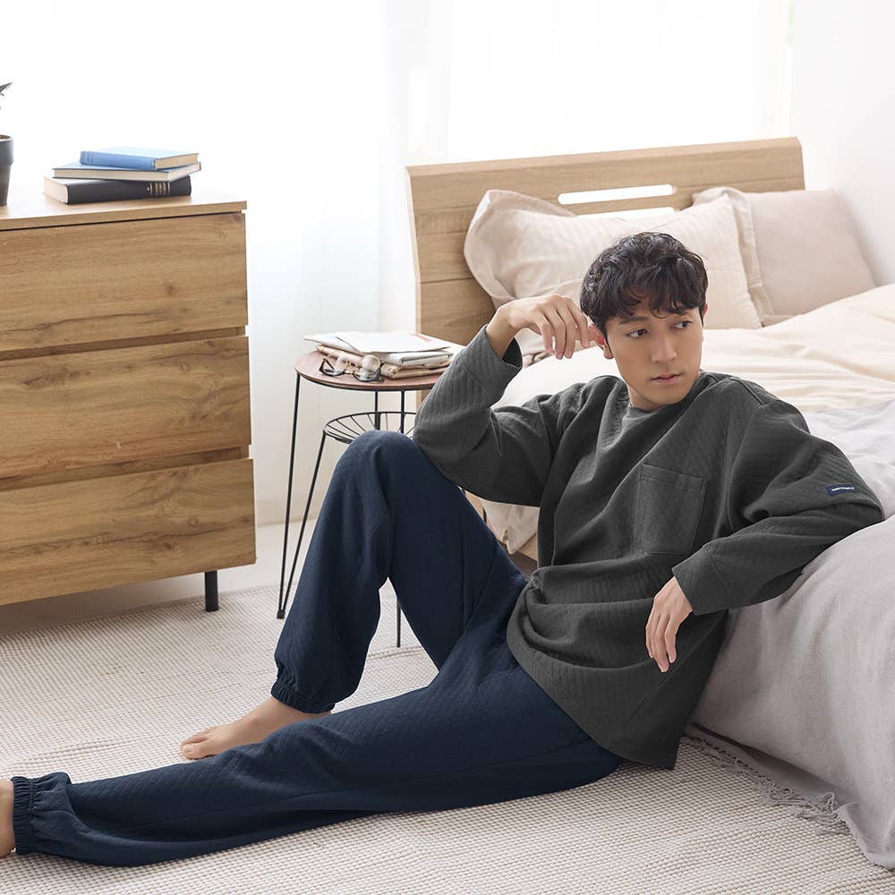 無地ニュートラルカラーでベーシックなスタイルのルームウェア上下セットです。