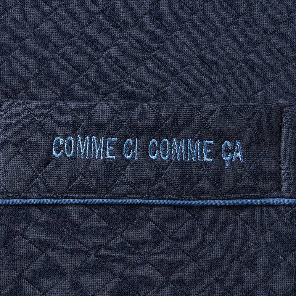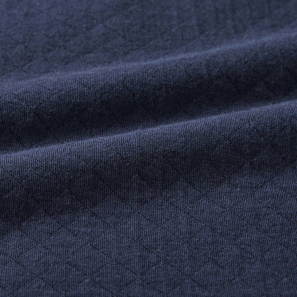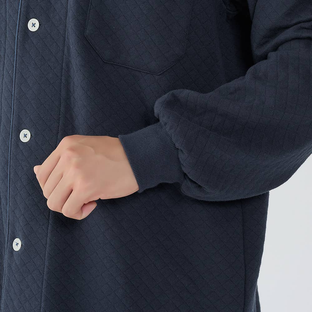 ・素材表裏綿100%の膨らみ感があるキルト素材を使用しており、伸縮性のあるニットの表生地と裏生地の間に中わたをサンドイッチ状に挟み込んでいるので保温性があります。