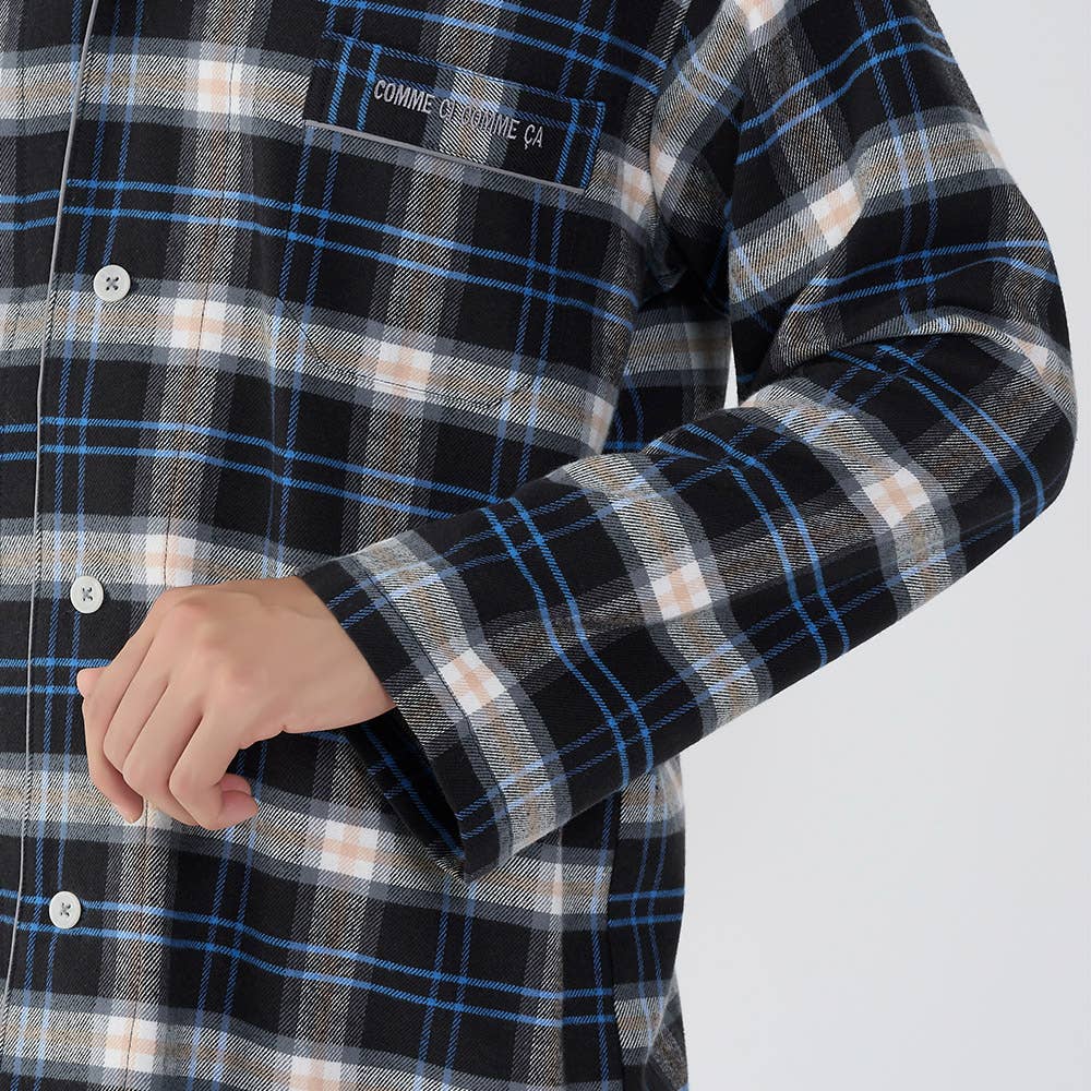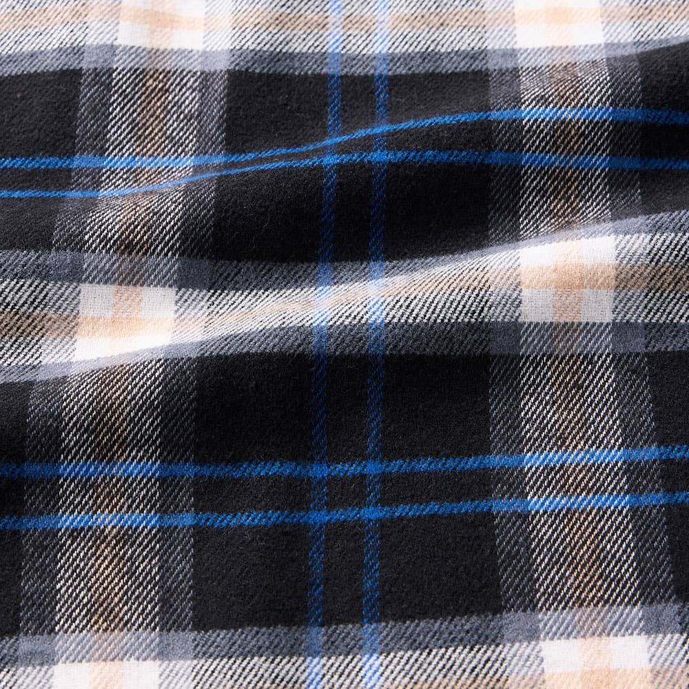 ・素材の綿100%ネル起毛は、適度な厚みの布帛素材に表側を軽く、内側(肌側)を深く起毛をかけているので、肌ざわりも柔らかく秋冬に暖かな印象の素材です。