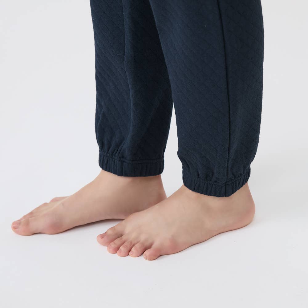 本体には、表裏綿100%の膨らみ感があるキルト素材を使用しています。伸縮性のあるニットの表生地と裏生地の間に中わたをサンドイッチ状に挟み込んでいるので保温性があります。又、厚手のあったか素材ですので、寒い季節もゆったり暖かにお過ごしいただけます。