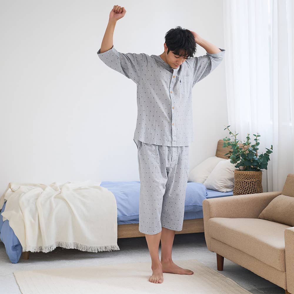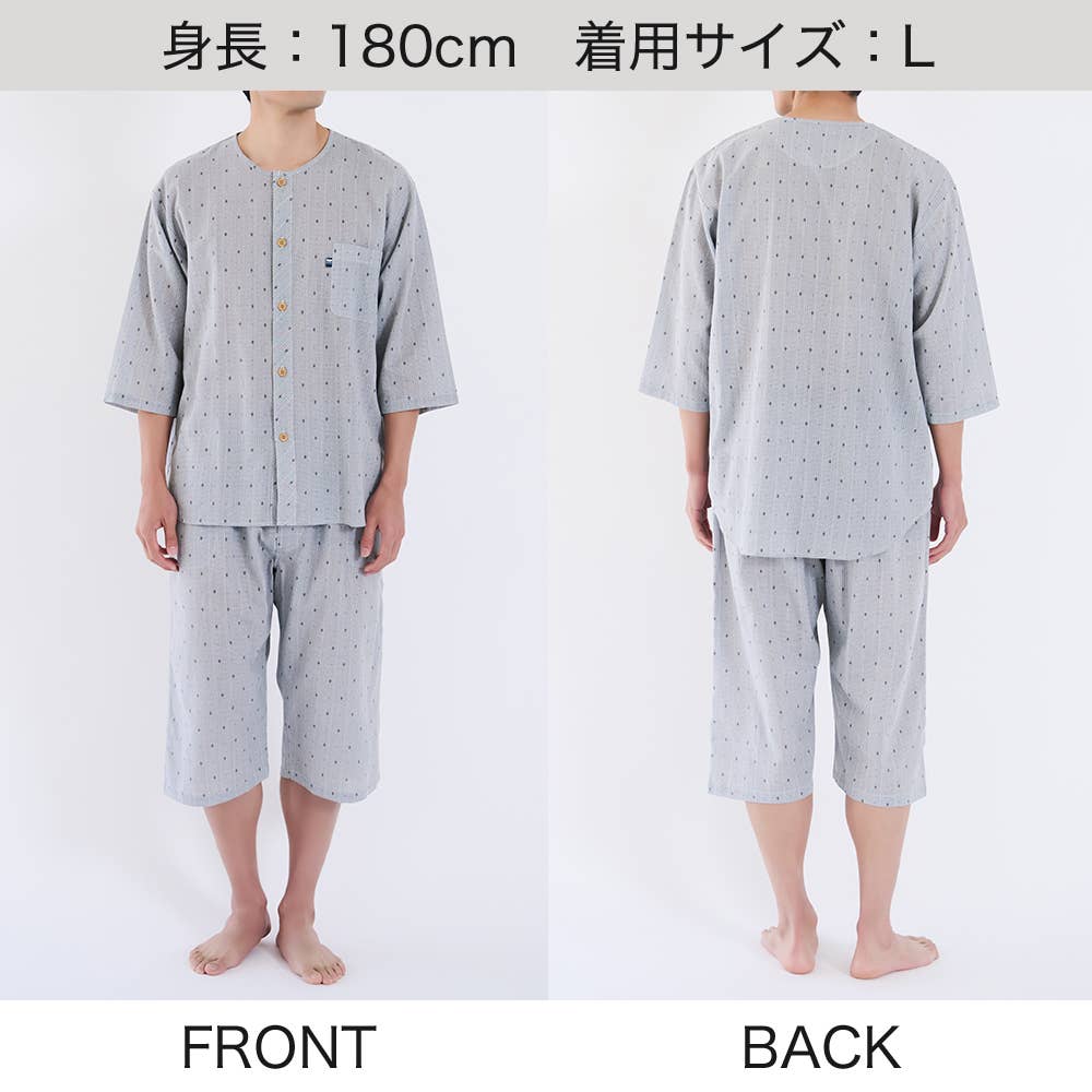 肌あたりの良い綿100%クレープ素材で、さらっとした肌触りが快適な素材です。織物にシボがあるため、肌との接触面積が少なく吸汗性通気性に優れており、ステテコなどにもよく使われる暑い季節に適した素材です。