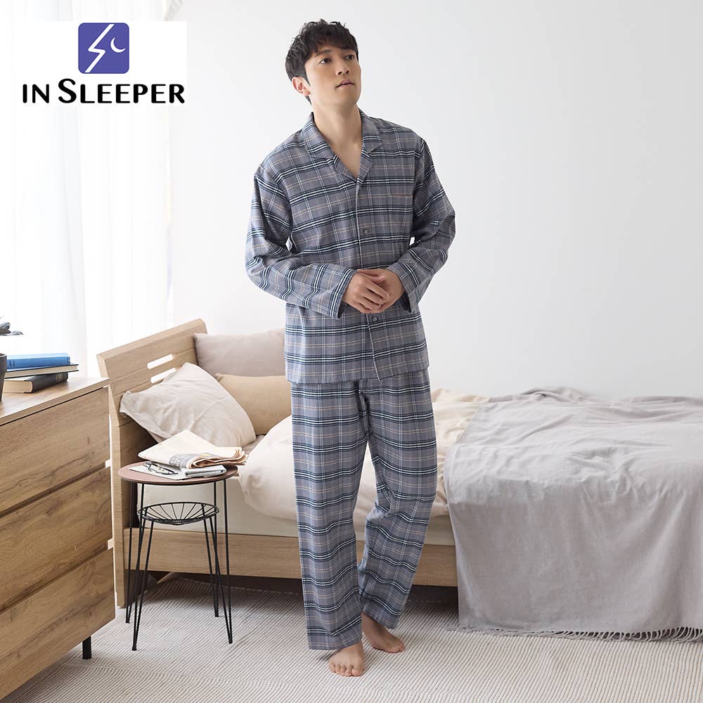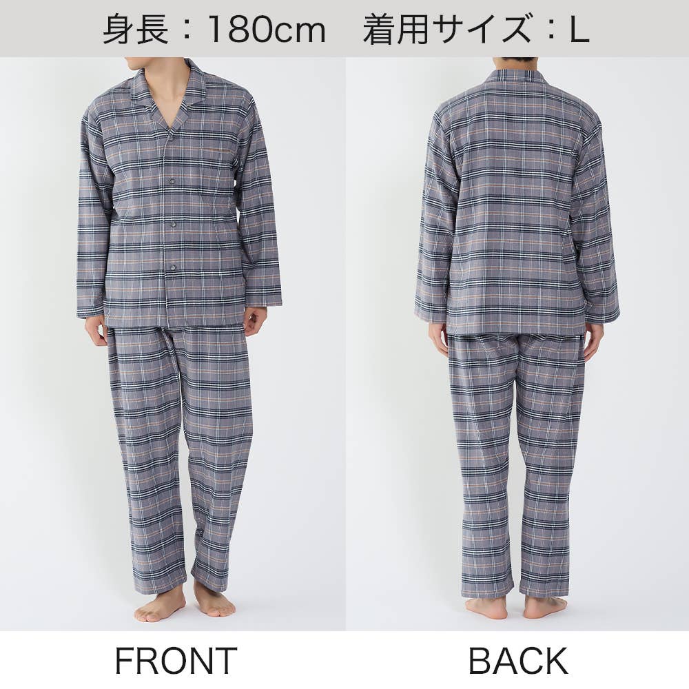 【脇縫い目無し・綿100%】ネル起毛 長袖長パンツ テーラーパジャマ【送料無料】