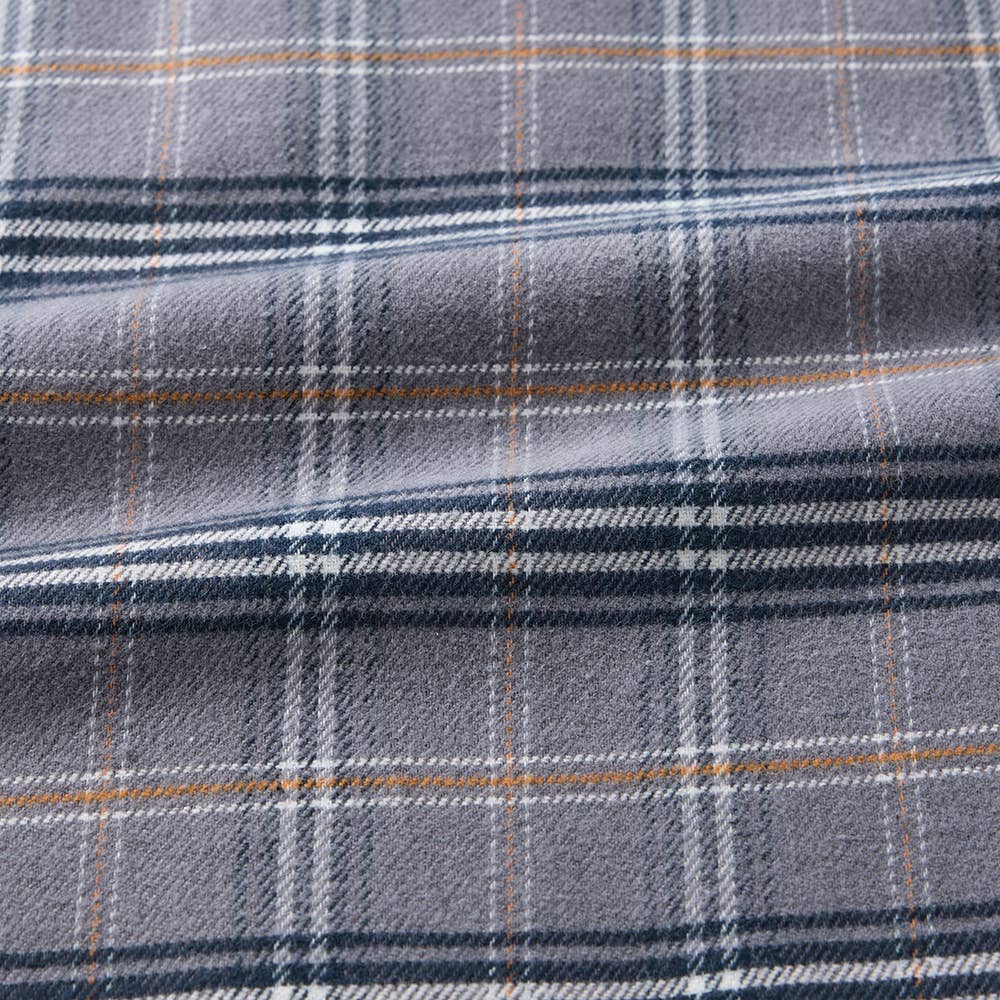 ・本体素材は、柔らかい風合いの綿100%ネル起毛になります。こちらのネル起毛は、適度な厚みの布帛素材に表側を軽く、内側【肌側】を深く起毛をかけているので、肌ざわりも柔らかく秋冬に暖かな印象の素材です。