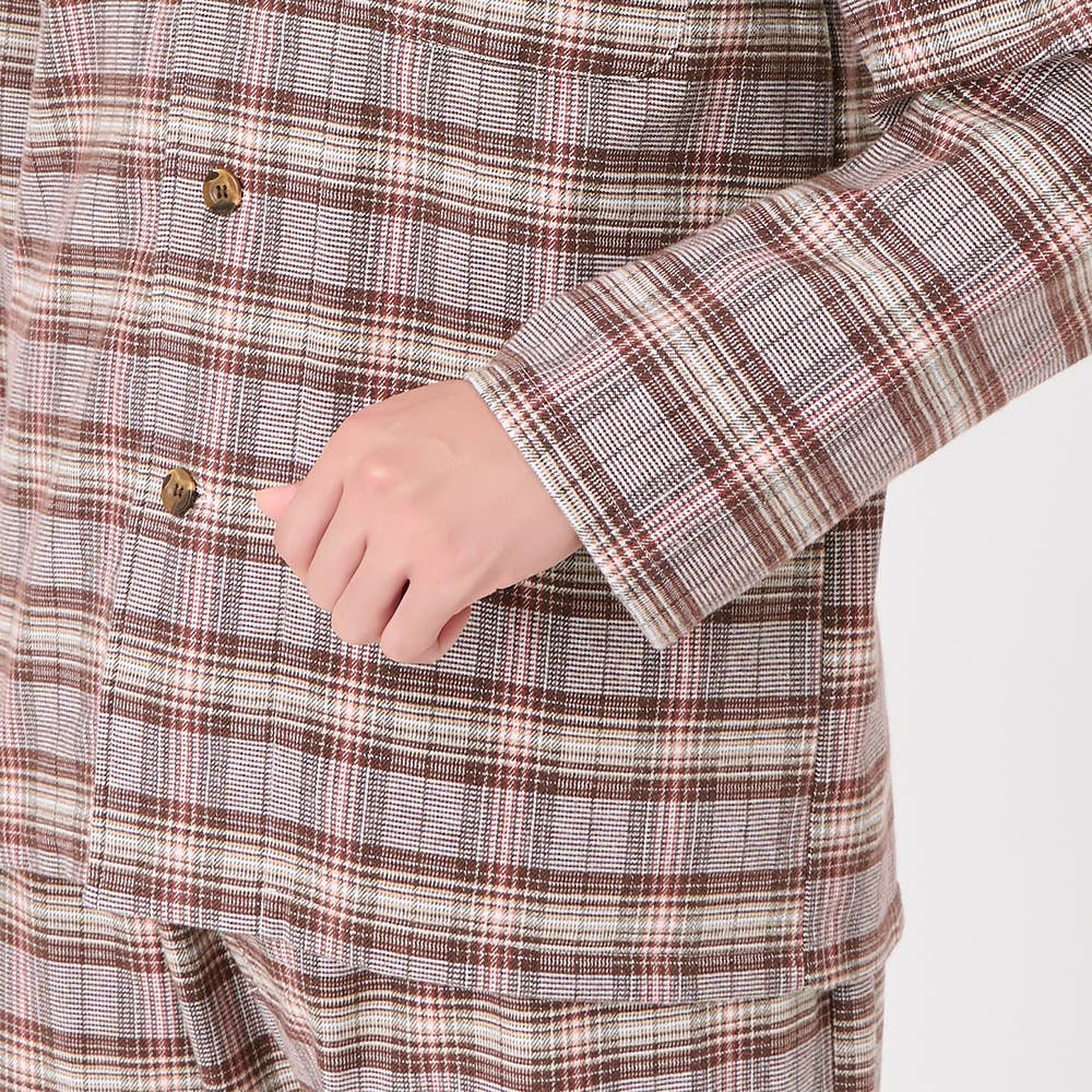 ・トップスはベーシックなテーラータイプで胸ポケットがついており、パンツはうれしい前あきタイプです。