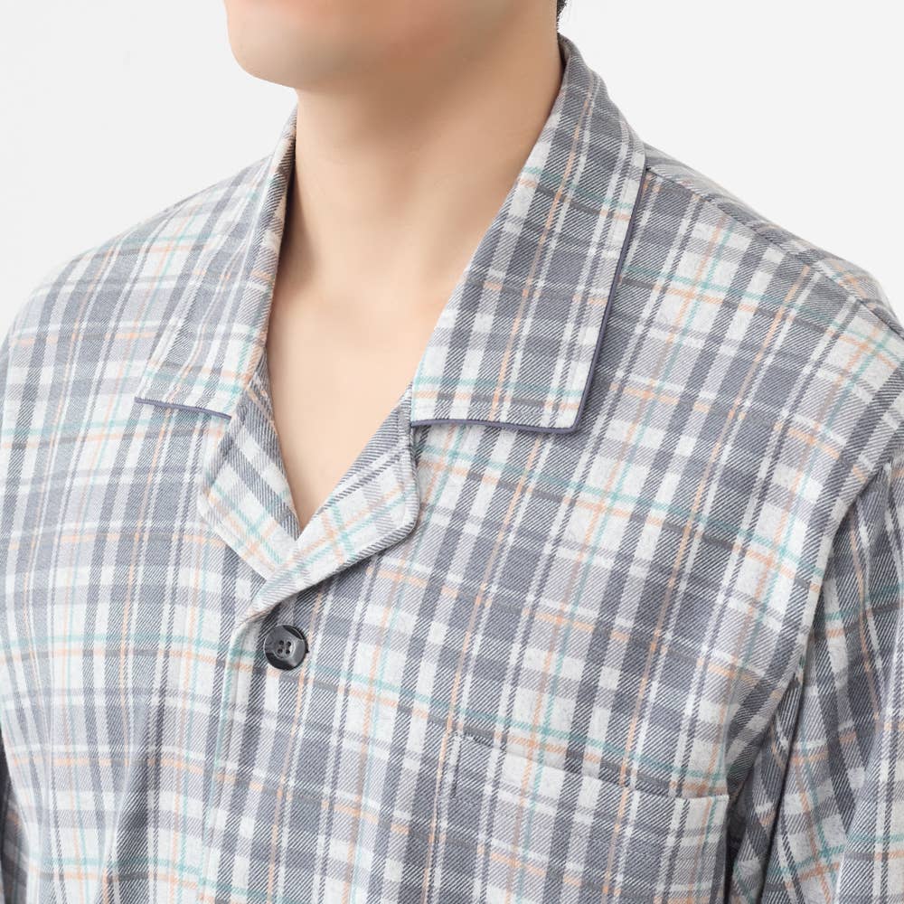 ・本体素材には、風合いの良い綿100%の両面起毛が施されている厚手のスムースを使用しており、ソフトな肌触りと保温性があるのが特長です。秋から冬にかけて着用していただける商品です。
