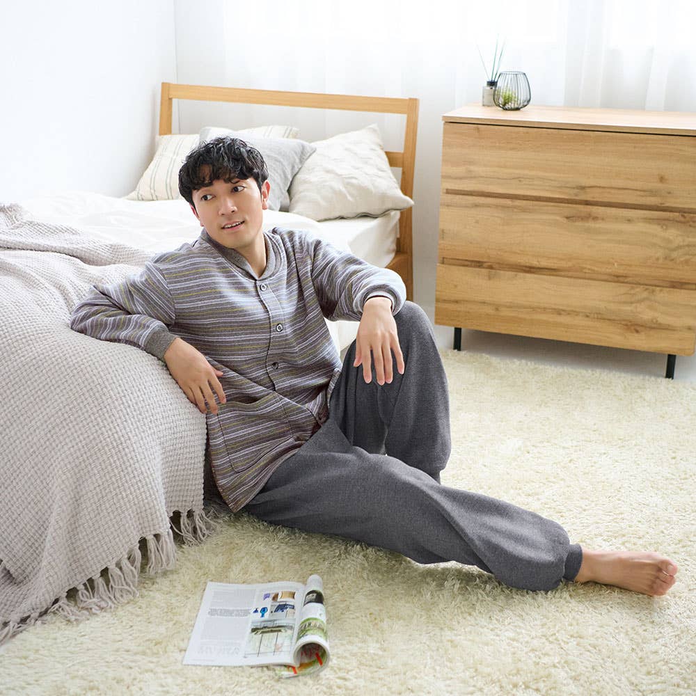 【極暖・まるで魔法瓶】裏起毛 長袖長パンツ ボーダー柄パジャマ【送料無料】