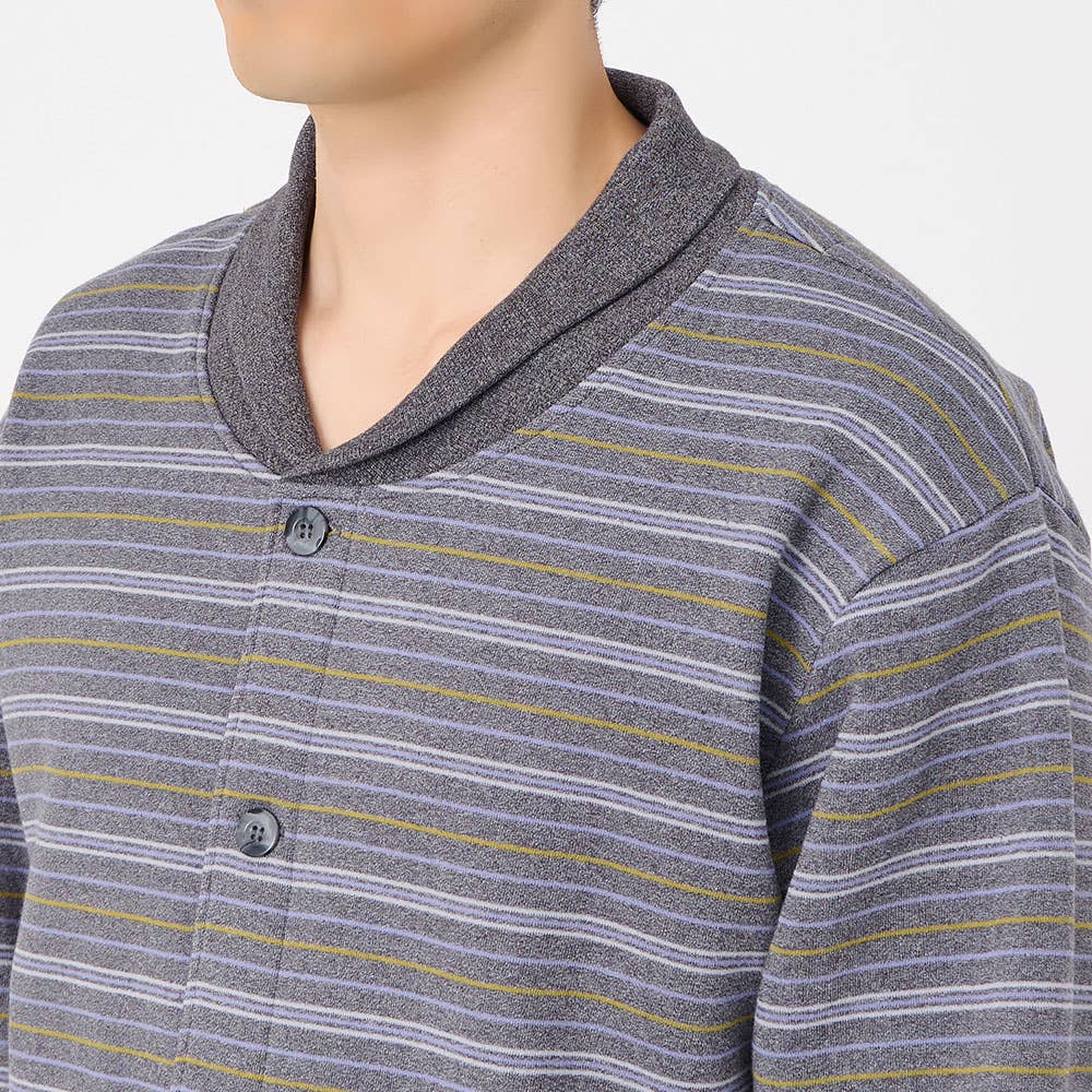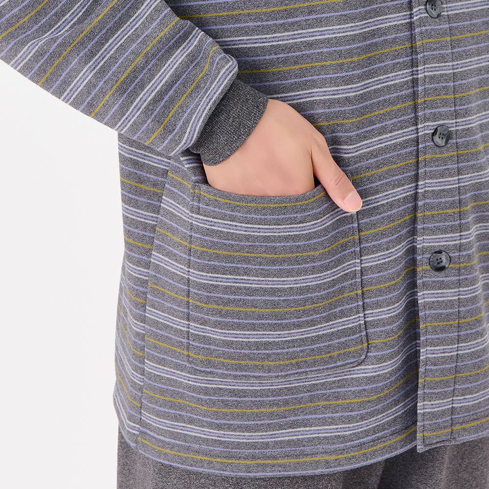 ・上衣素材は肌寒い季節にもうれしいパイル裏起毛素材のボーダー柄となります。パイル裏起毛素材は生地の裏側(肌側)が起毛されており、ふんわりとした暖かみのある厚手素材で、秋冬期に適した素材です。