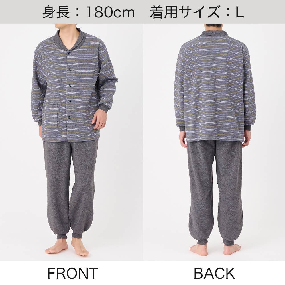 • 【極暖・まるで魔法瓶】裏起毛 長袖長パンツ ボーダー柄パジャマ【送料無料】 SG4305EC グレー