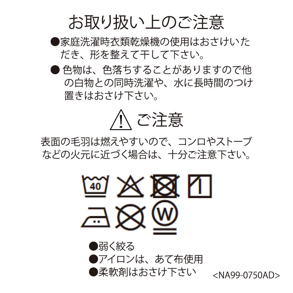 ・弱く絞る・アイロンは、あて布をご使用下さい。・柔軟剤はおさけ下さい