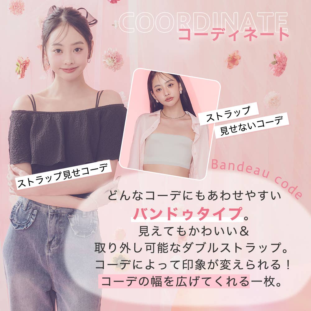・バストを自然な丸みに整えるティアドロップ型の挿入パッド付きで美しいバストラインをキープ。