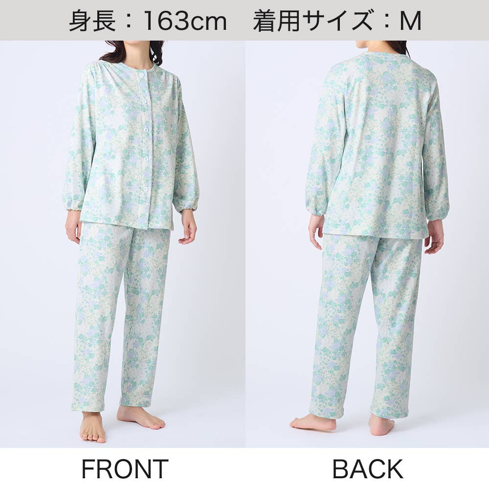 • 【京都捺染】綿100% スムース 長袖長パンツ パジャマ【送料無料】 TG2216 グリーン