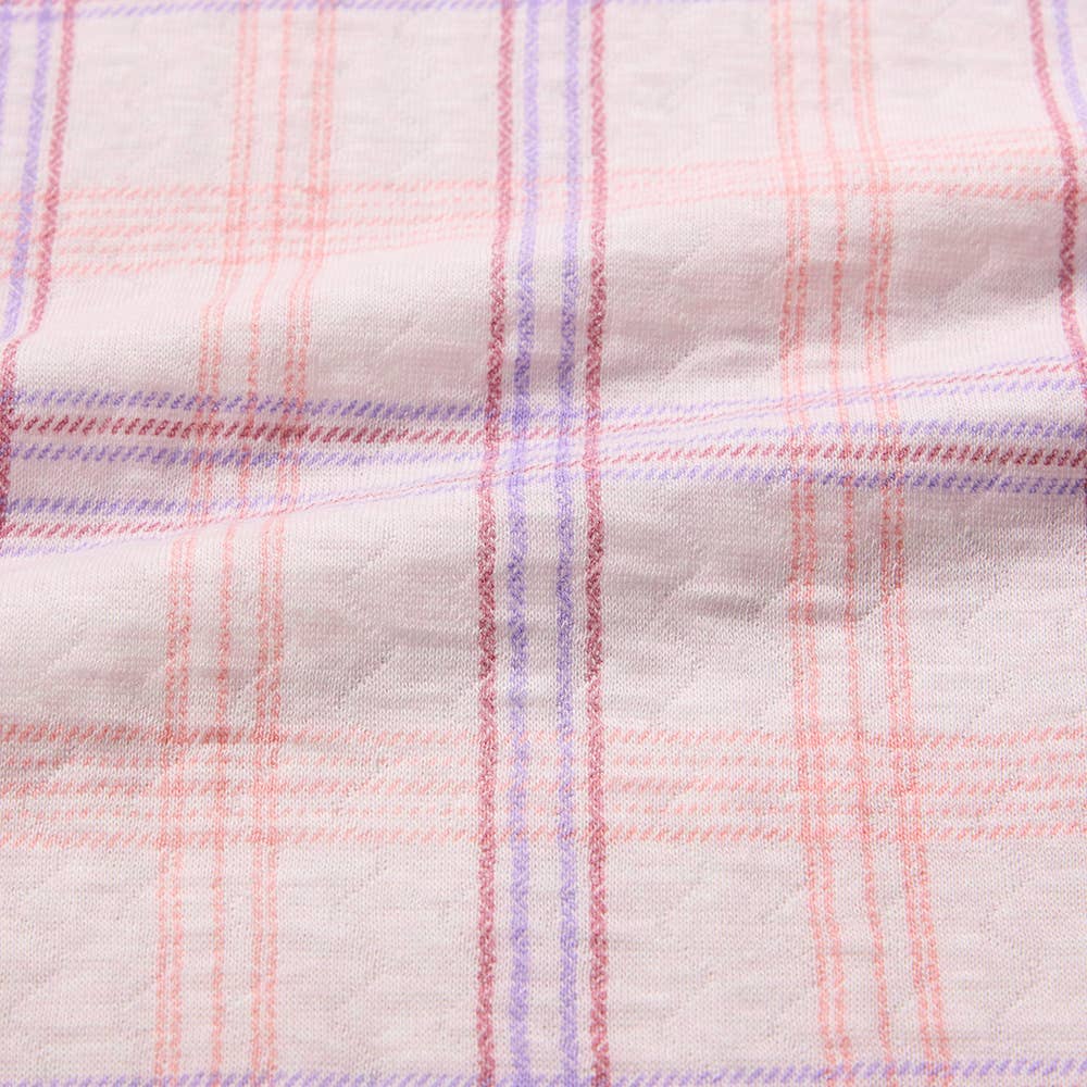 ・本体素材には、肌側コットンのソフトキルト素材を使用しています。キルト素材は、伸縮性のあるニットの表生地と裏生地の間に中わたをサンドイッチ状に挟み込んでいるので、保温性があり秋冬期に適した素材です。