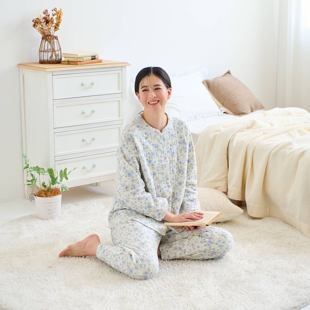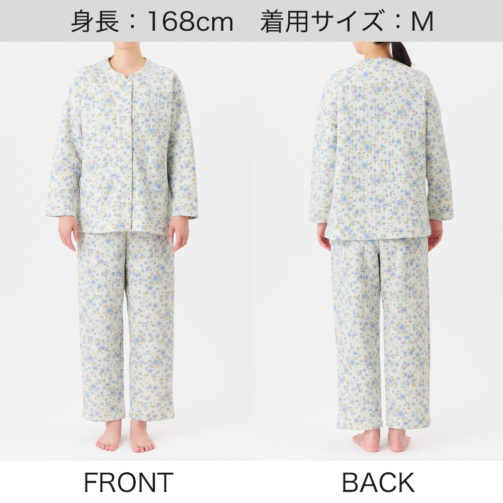 ・こちらの商品は、その中でも厚みがあるキルトで、肌側綿100%の商品です。(厚みは、弊社パジャマ商品内を基準にしています)