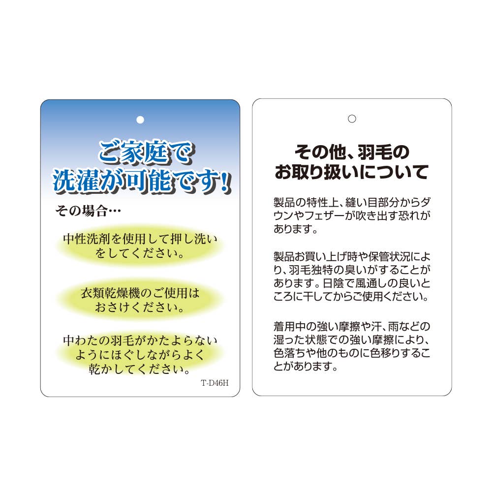 - 表地・裏地:ポリエステル100% 中わた:ダウン80%、フェザー20% 表襟部:ポリエステル100%
